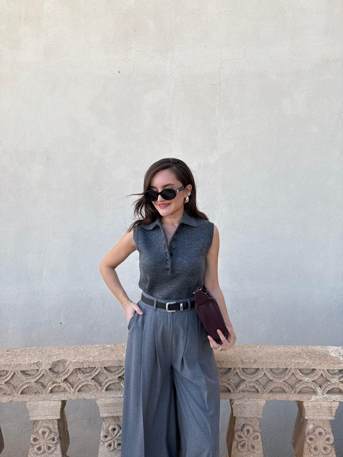Antrasit Polo Yaka Düğmeli Triko Kazak 251105