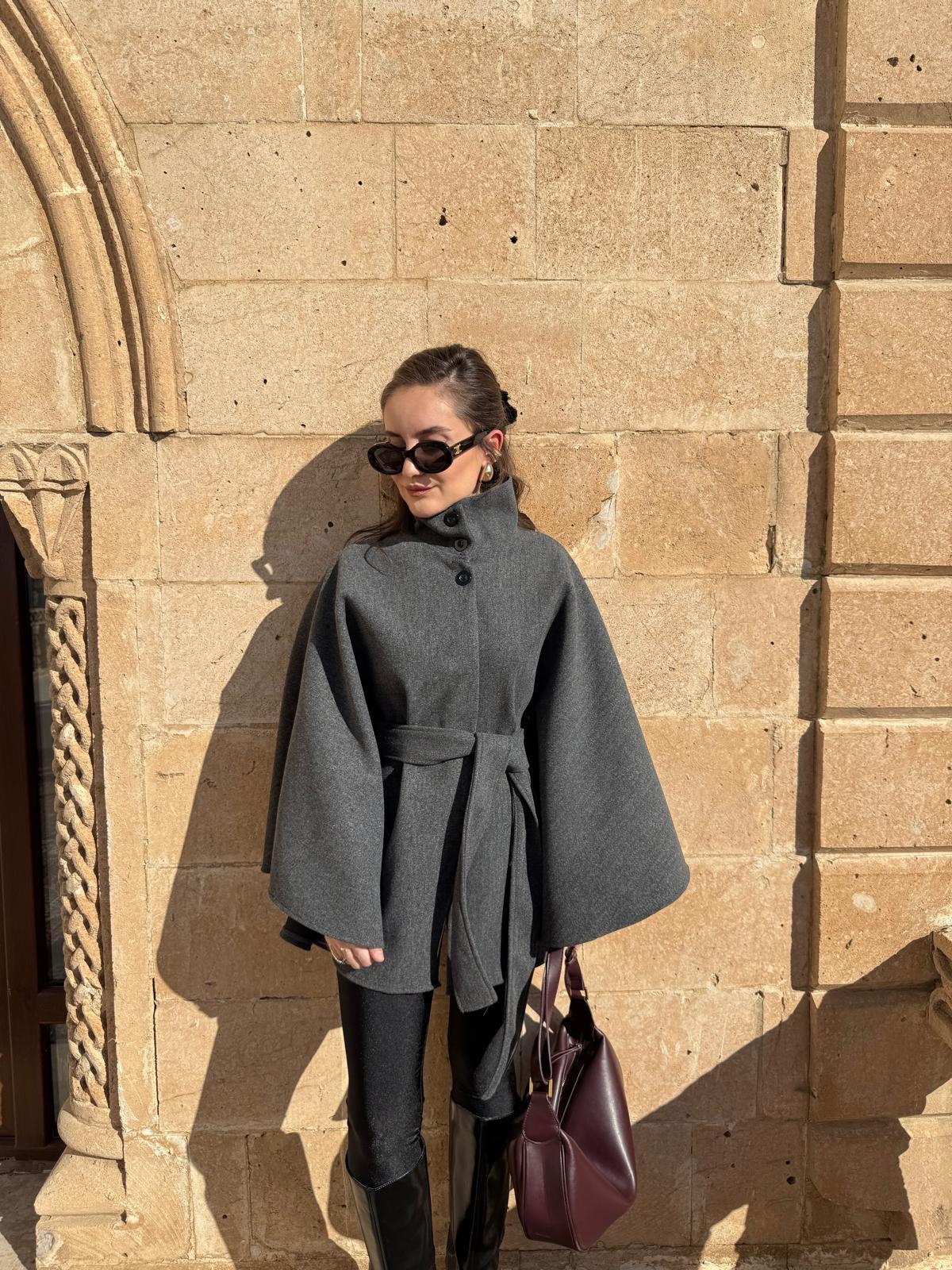 Antrasit Premium Seri Kuşaklı Panço 1055