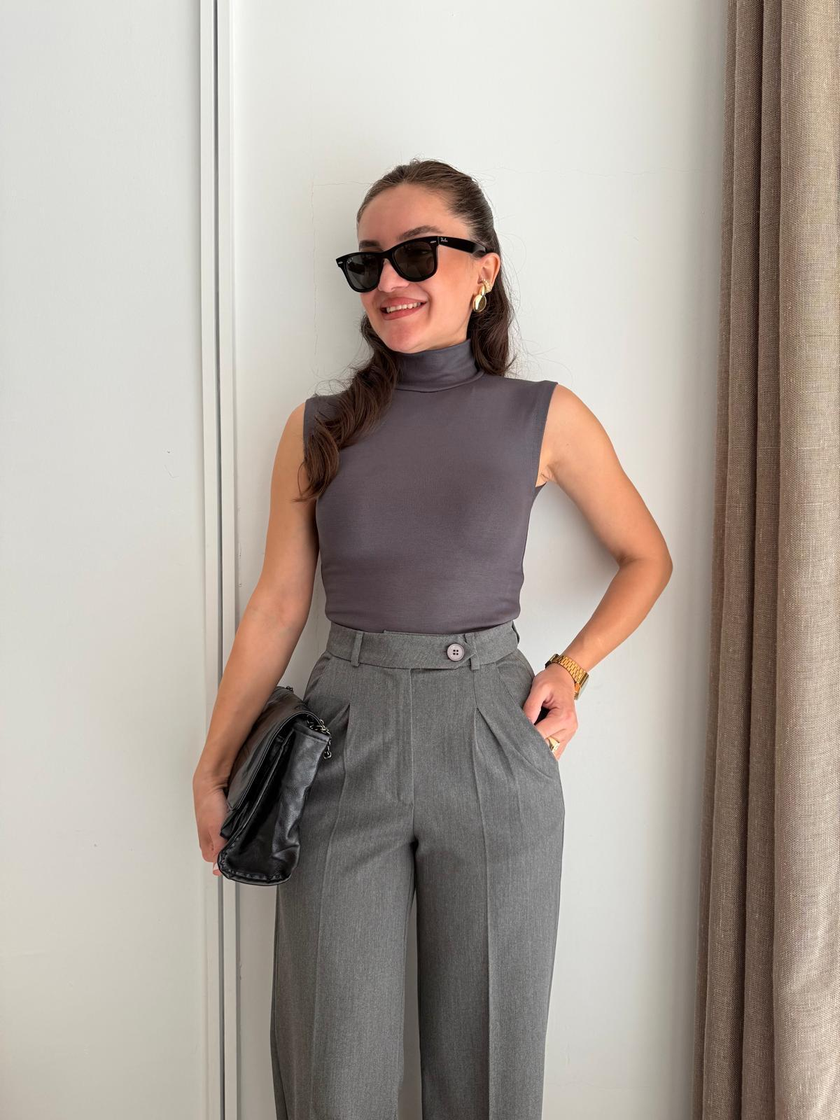 Antrasit Sıfır Kol Balıkçı Yaka Bluz 1494