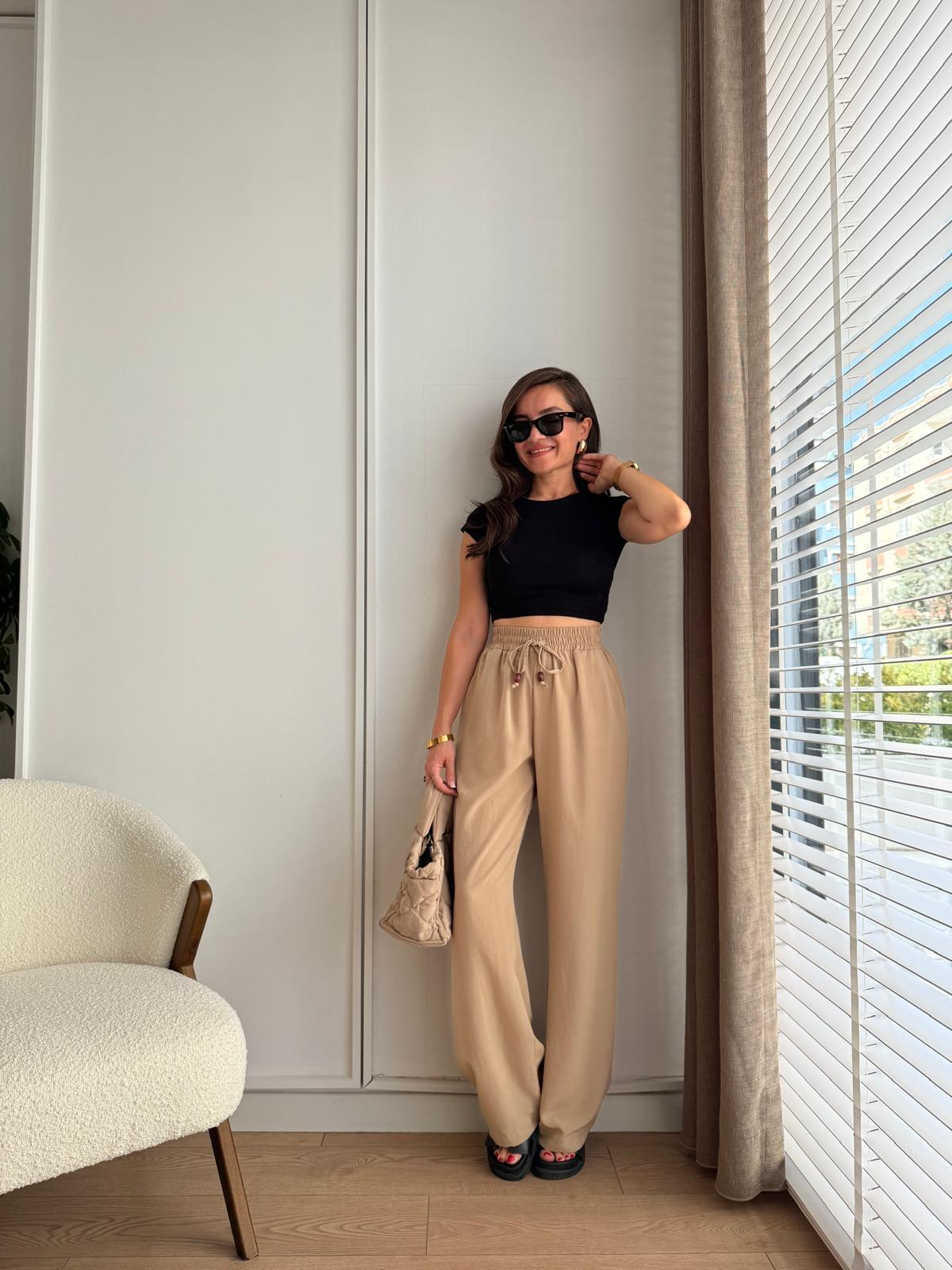 Bej Bel Lastikli Tensel Palazzo Pantolon 3280