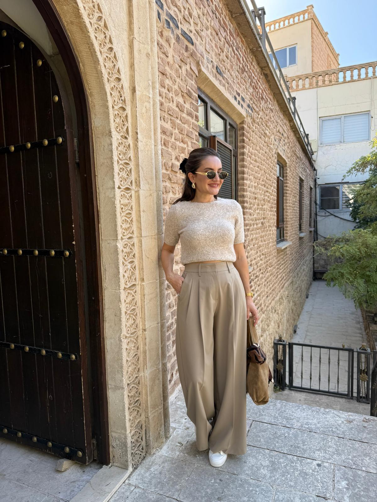 Bej Pensli Ayarlanabilir Palazzo Pantolon 71606