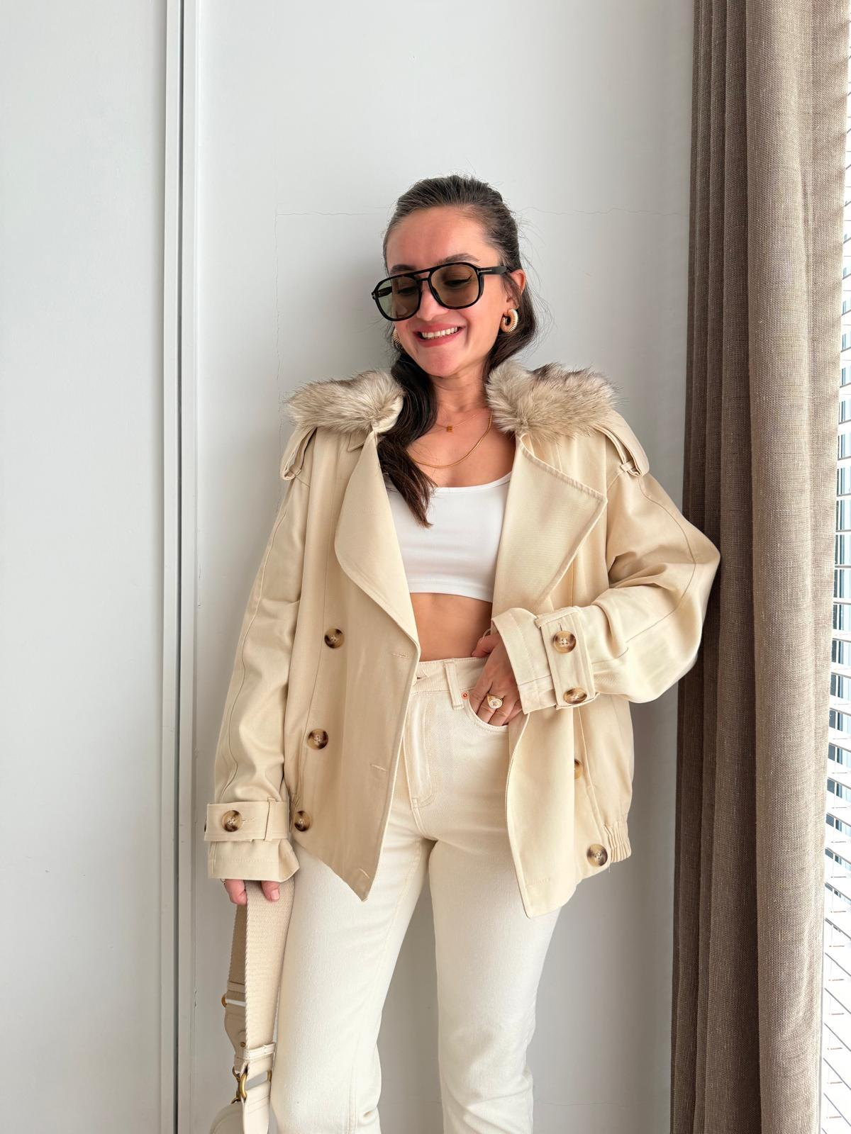 Bej Yakası Kürklü Astarlı Ceket 8235