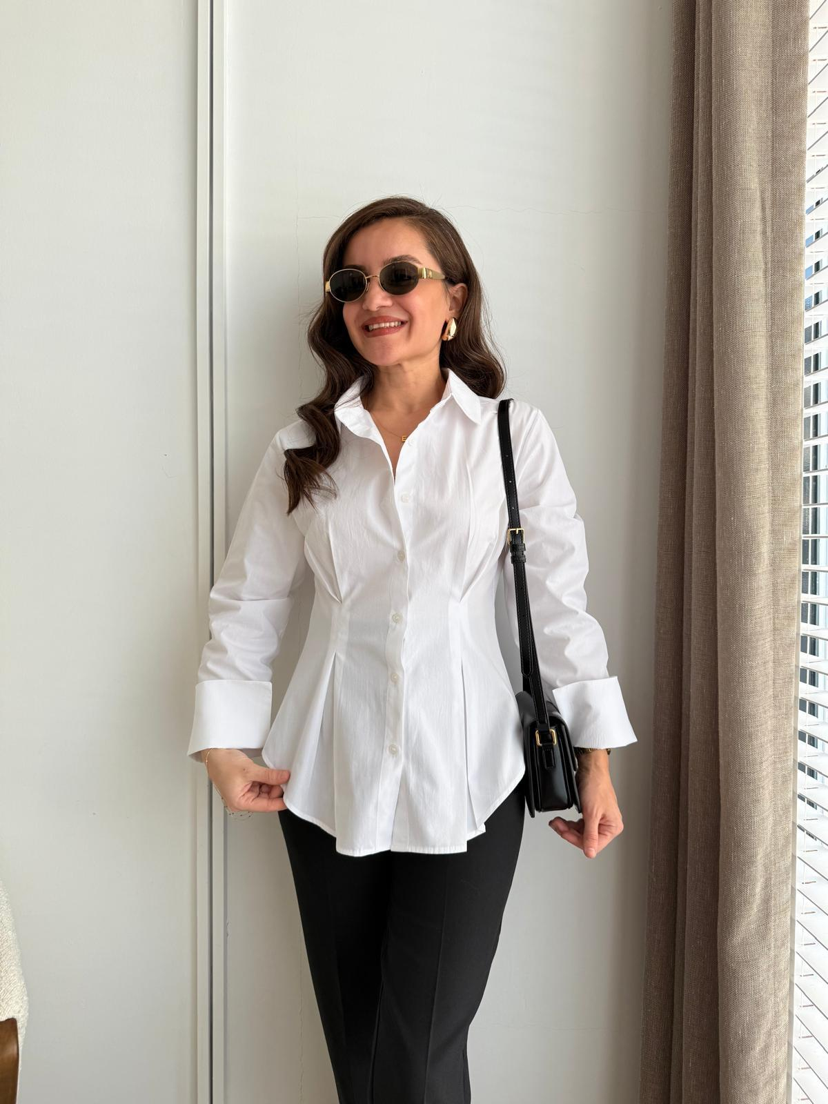 Beyaz Bilek Detaylı Pileli Gömlek 4965