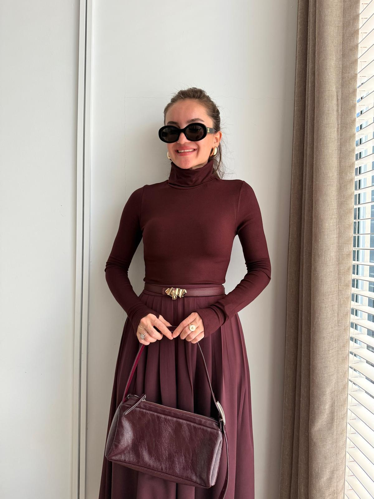 Bordo Balıkçı Yaka Parmak Geçme Bluz 17109