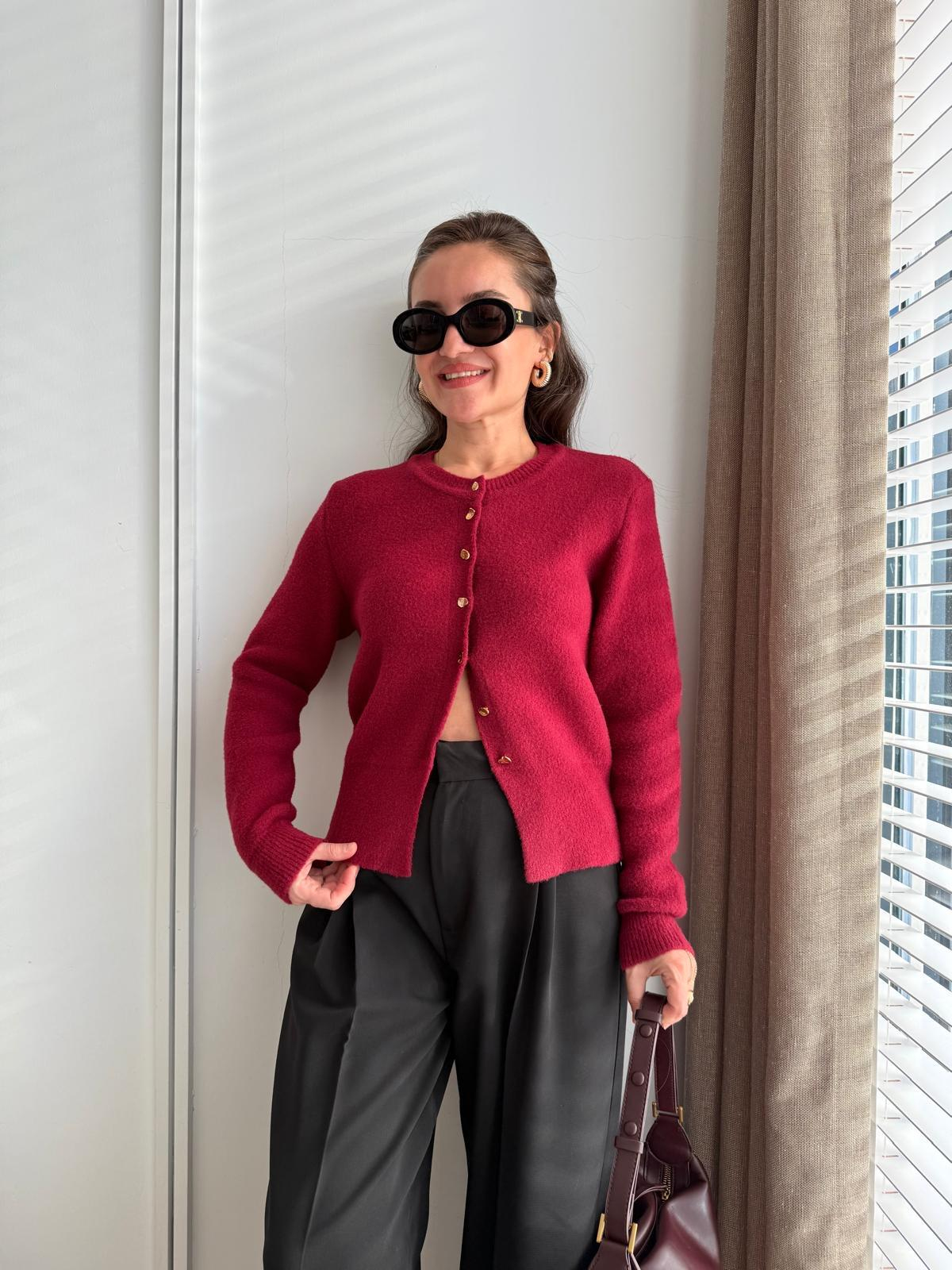 Bordo Gold Düğmeli Angora Hırka 7606