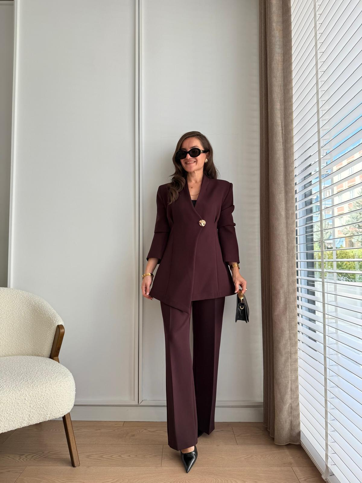 Bordo Gold Düğmeli Dikiş Detaylı Ceket Pantolon Takım 8761