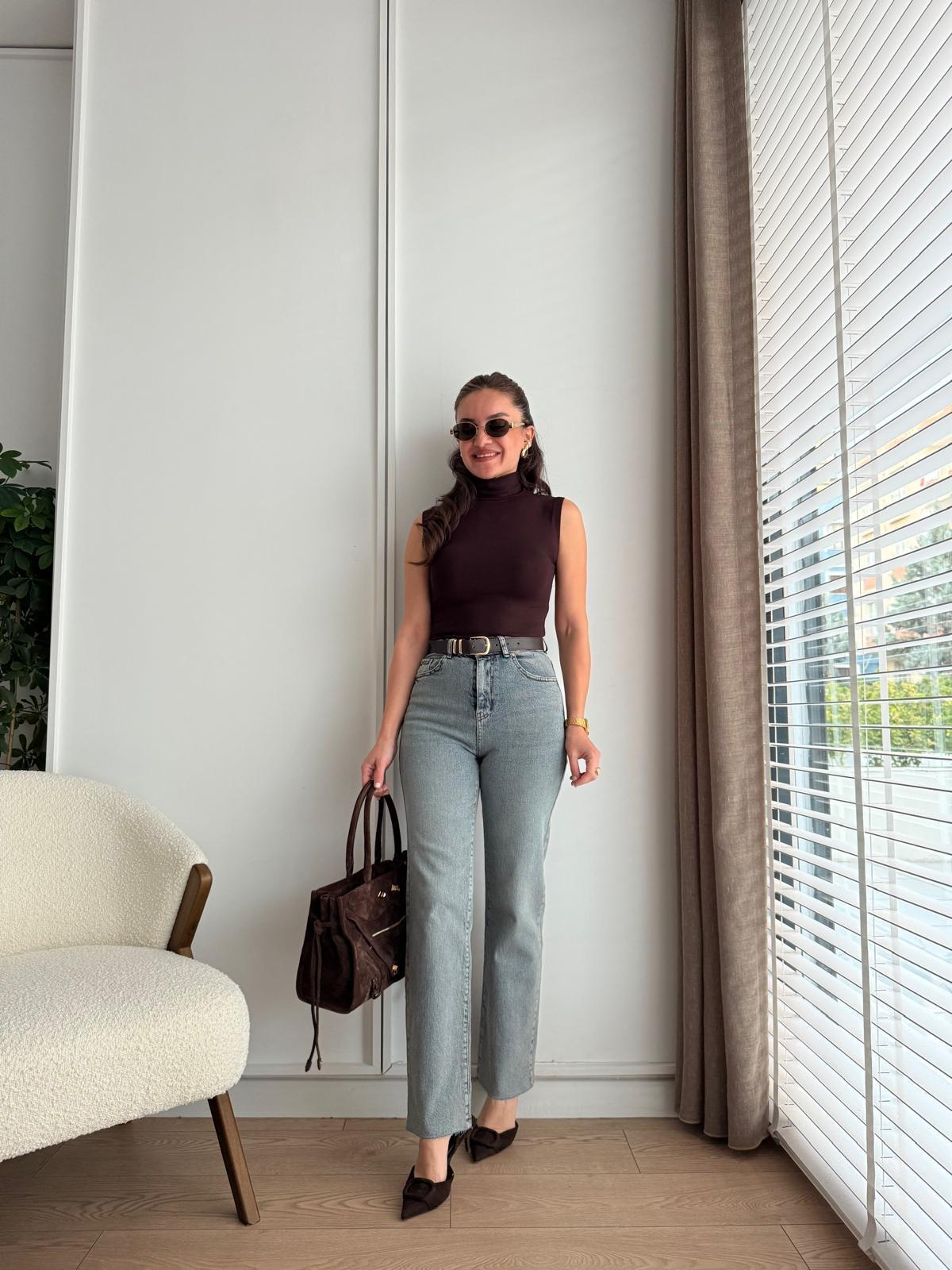 Buz yeşili Kemerli Paçası Kesik Jean 102