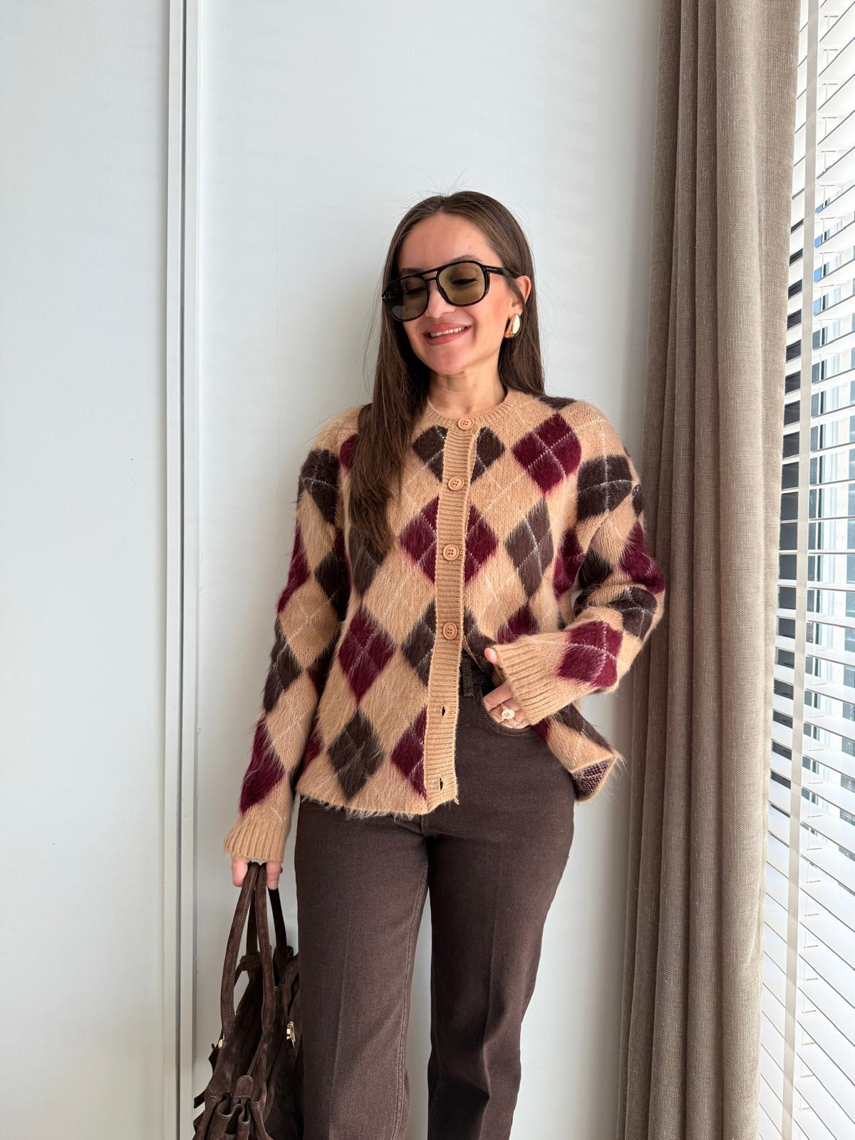 Camel Bisiklet Yaka Baklava Desen Triko Hırka 36902