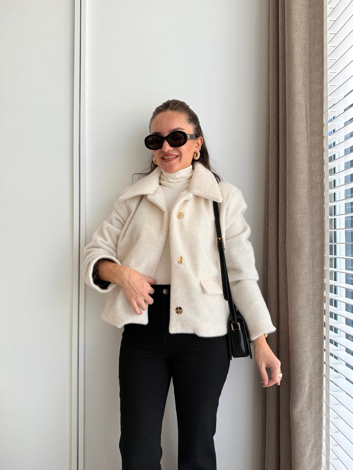 Ekru Premium Seri Astarlı Kürk Kaban 1019