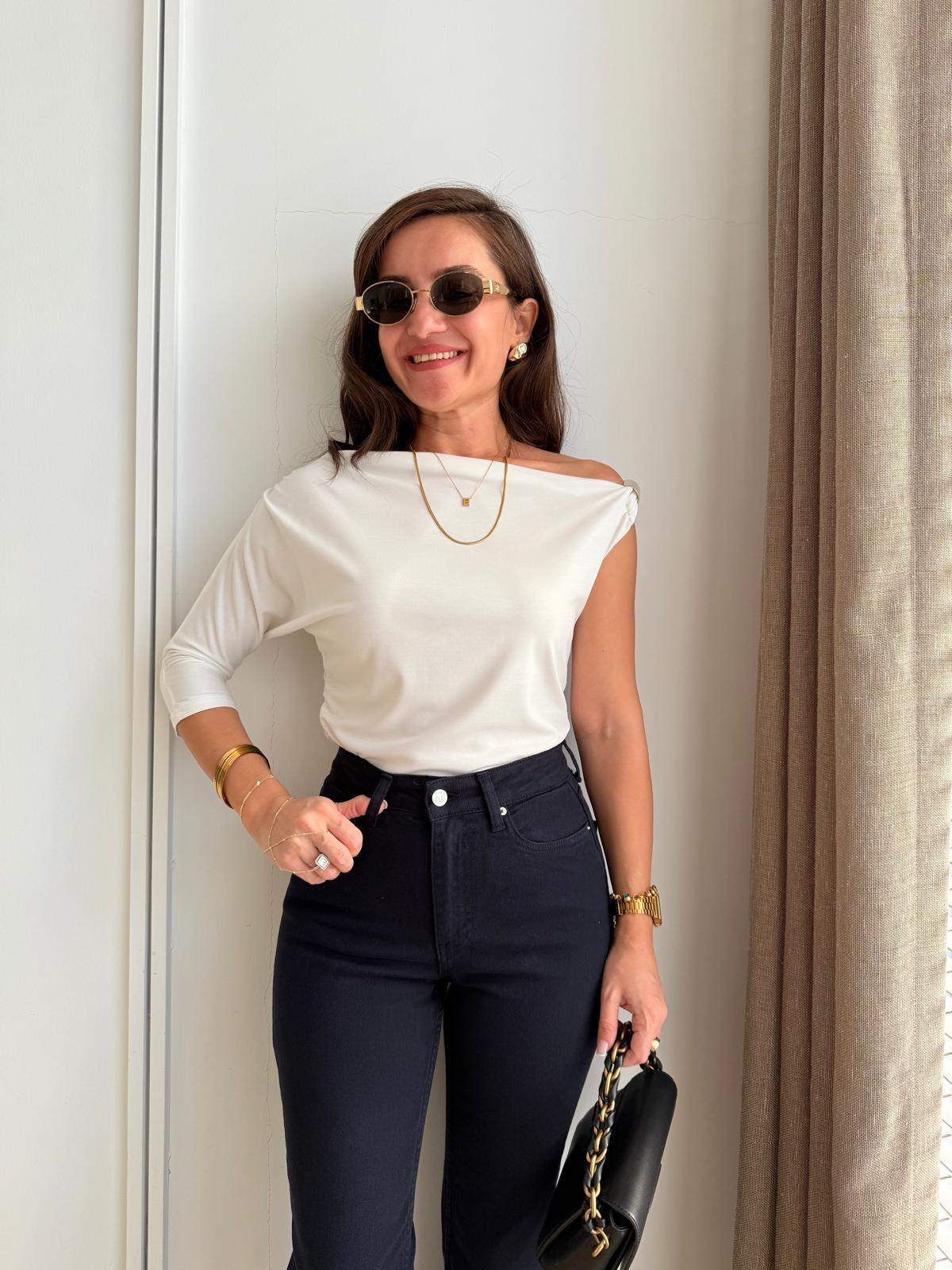 Ekru Tek Kol Omuz Detaylı Bluz 30029