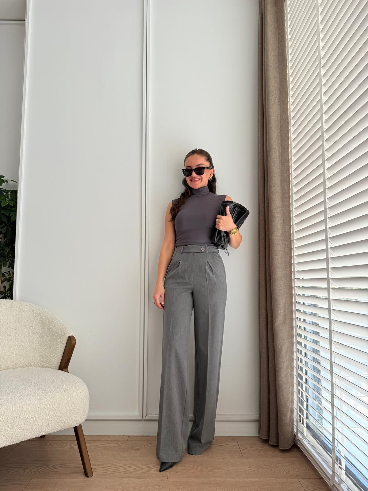Gri Yüksek Bel Pensli Palazzo Pantolon 5140