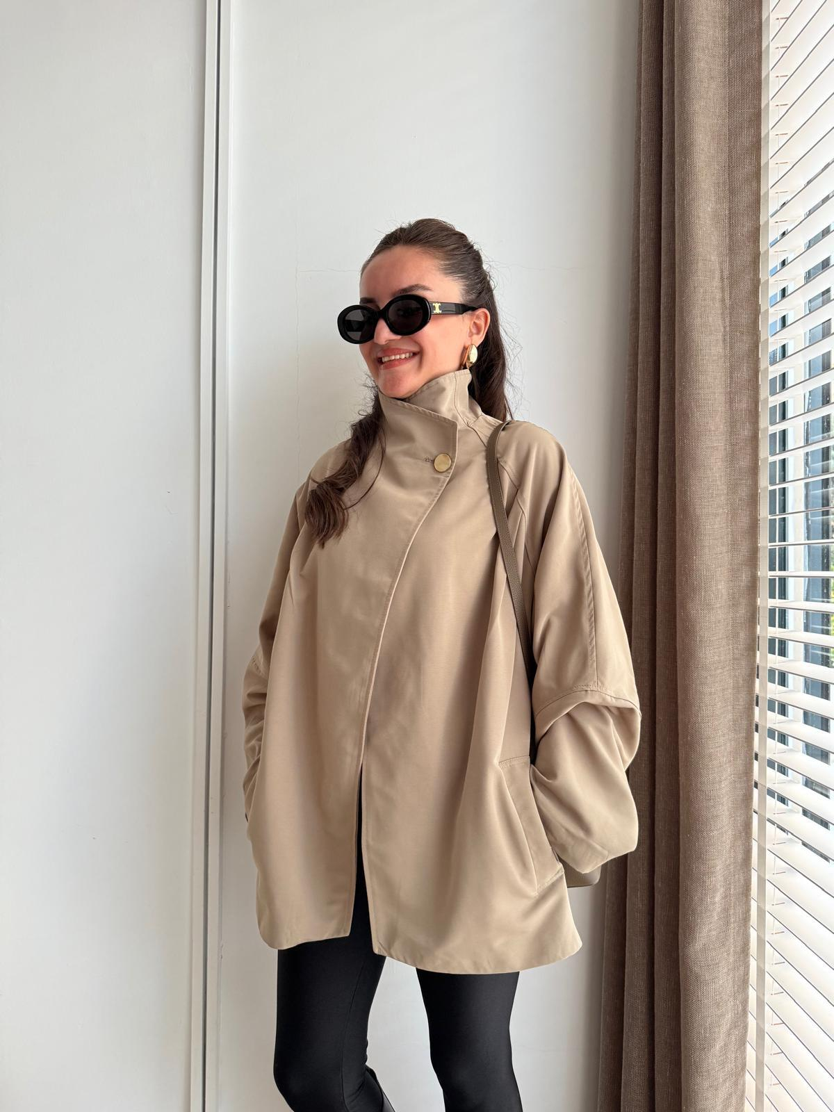 Haki Düğme Detaylı Oversize Trençkot 0188