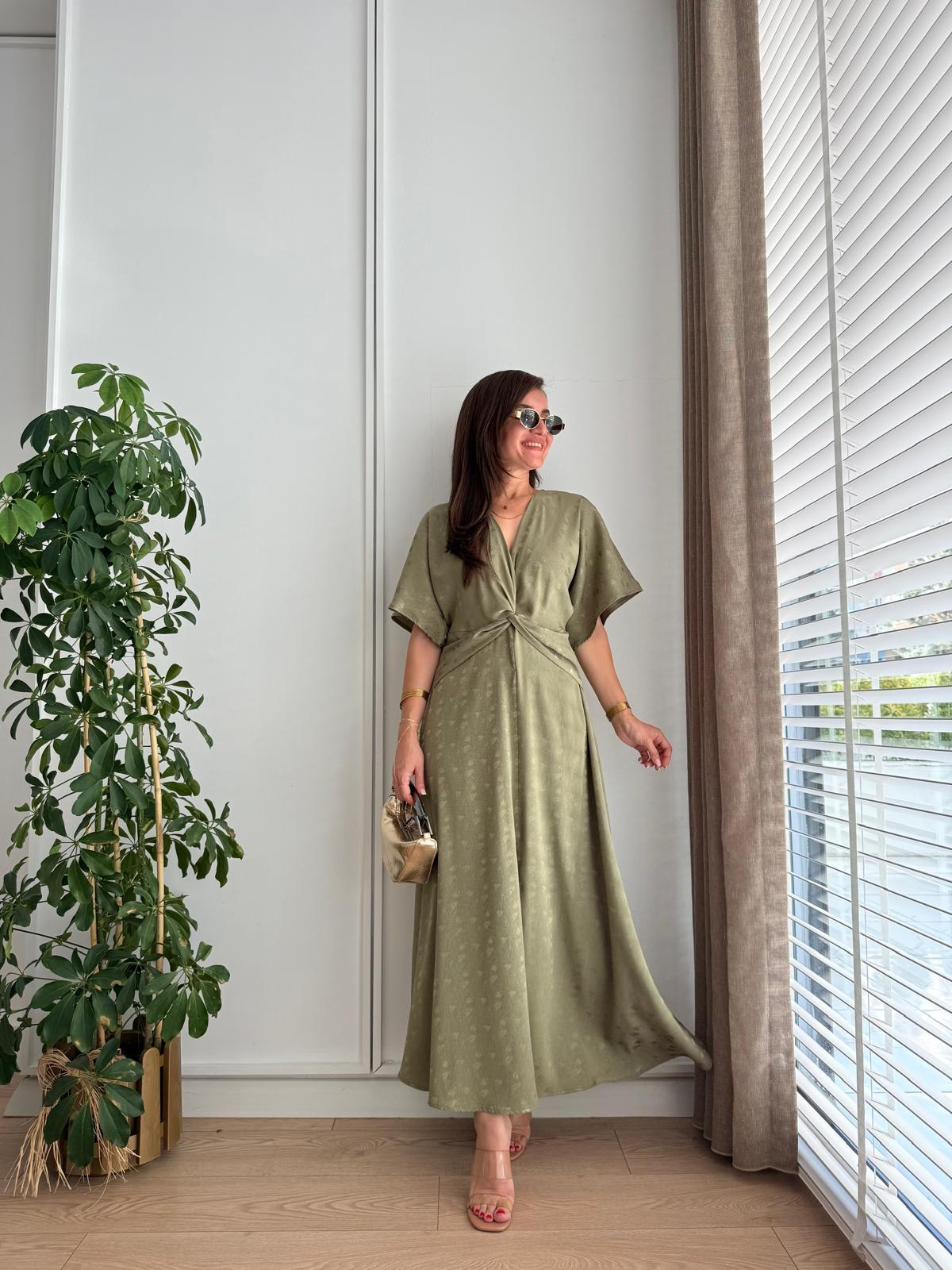Haki Düğüm Detaylı Desenli Jakar Elbise K251670