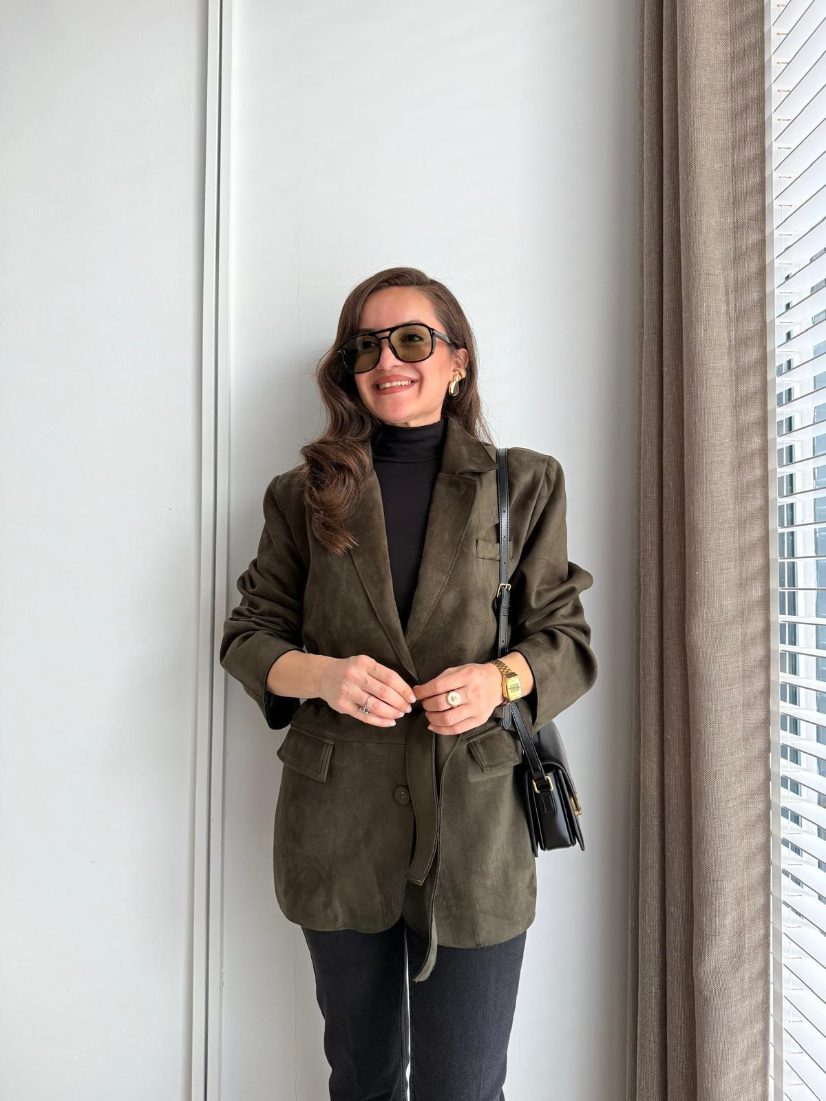 Haki Kuşaklı Astarlı Süet Ceket 1012