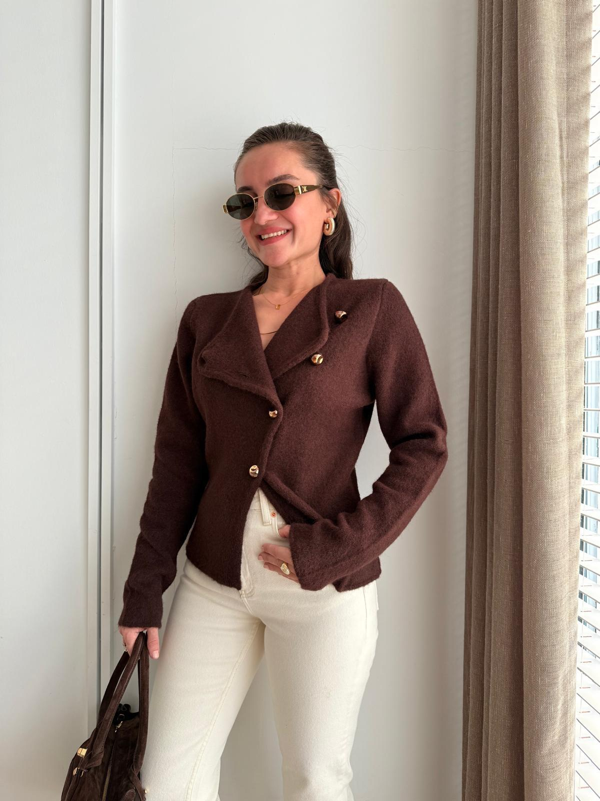 Kahve rengi Çapraz Gold Düğmeli Hırka 4897