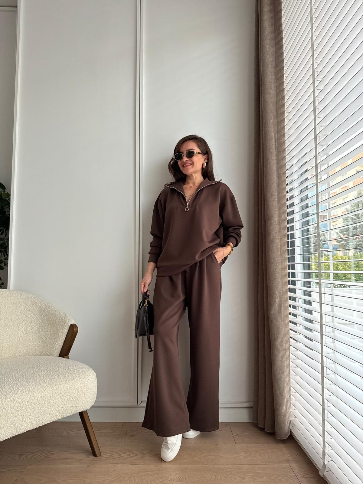 Kahve rengi Dik Yaka Fermuarlı Modal Takım 1105