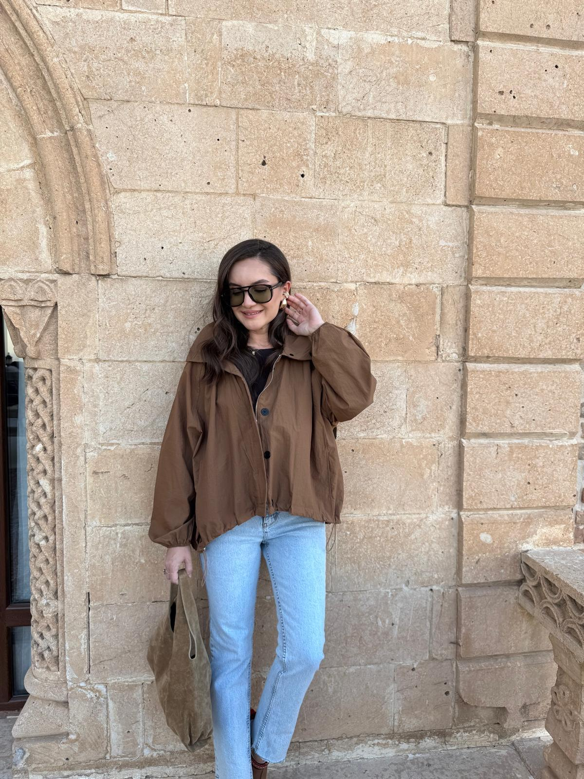 Kahve rengi Fermuarlı Bel Lastikli Rüzgarlık 36721