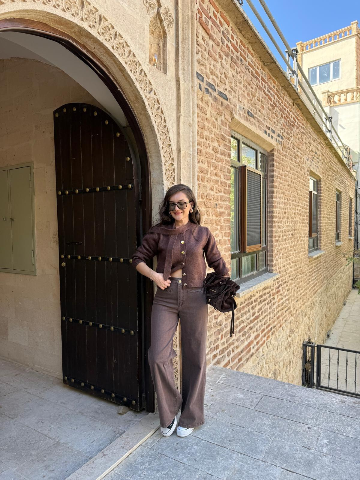 Kahve rengi Geniş Paça Jean Pantolon 3973