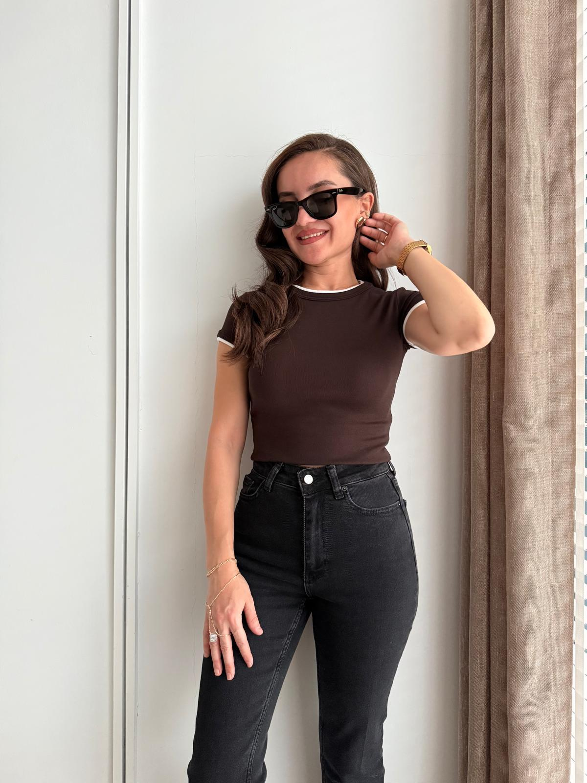 Kahve rengi Kısa Kol Garnili Bluz 17073