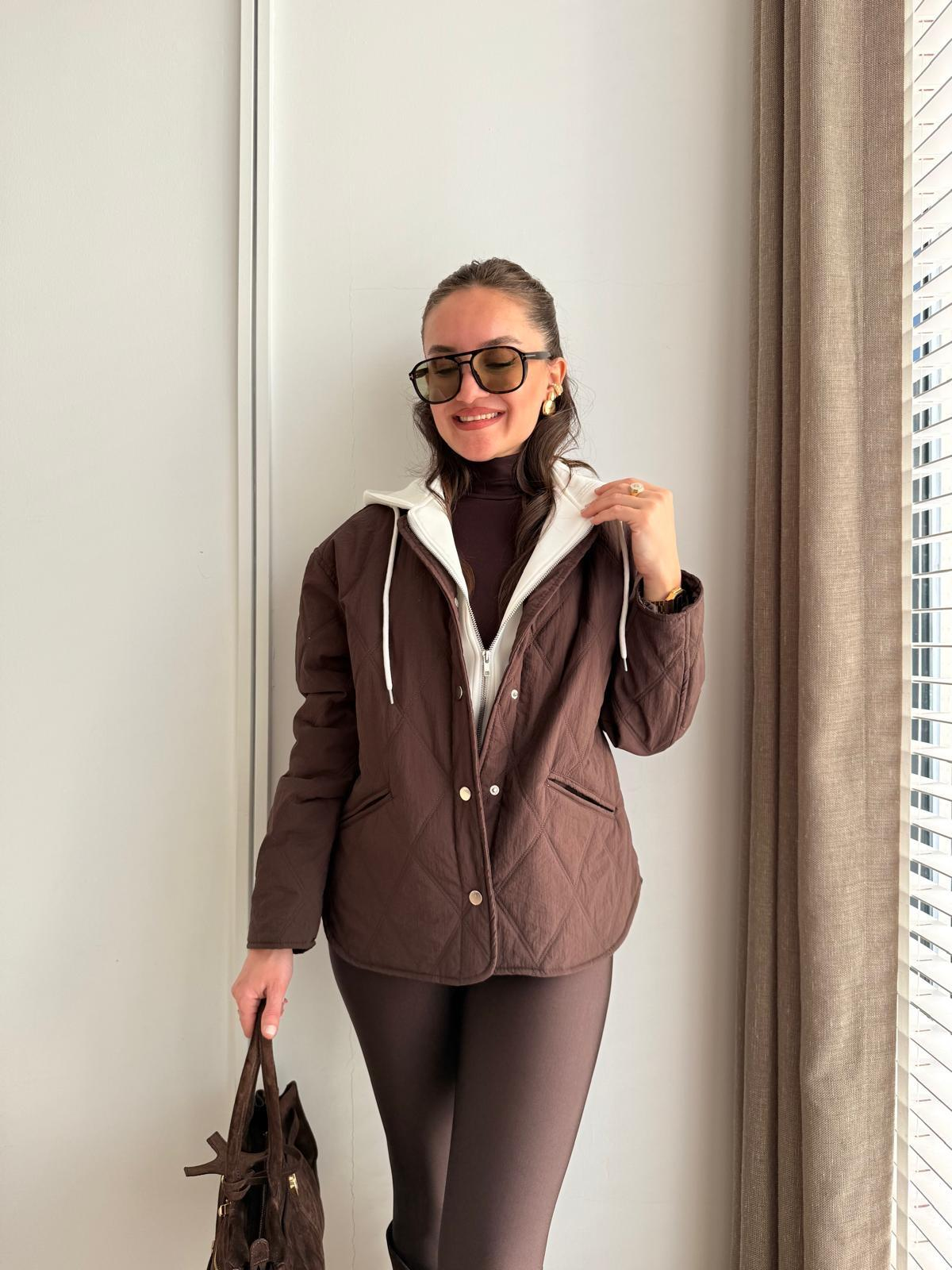 Kahve rengi Premıum Seri Kapüşonlu Mont 5841