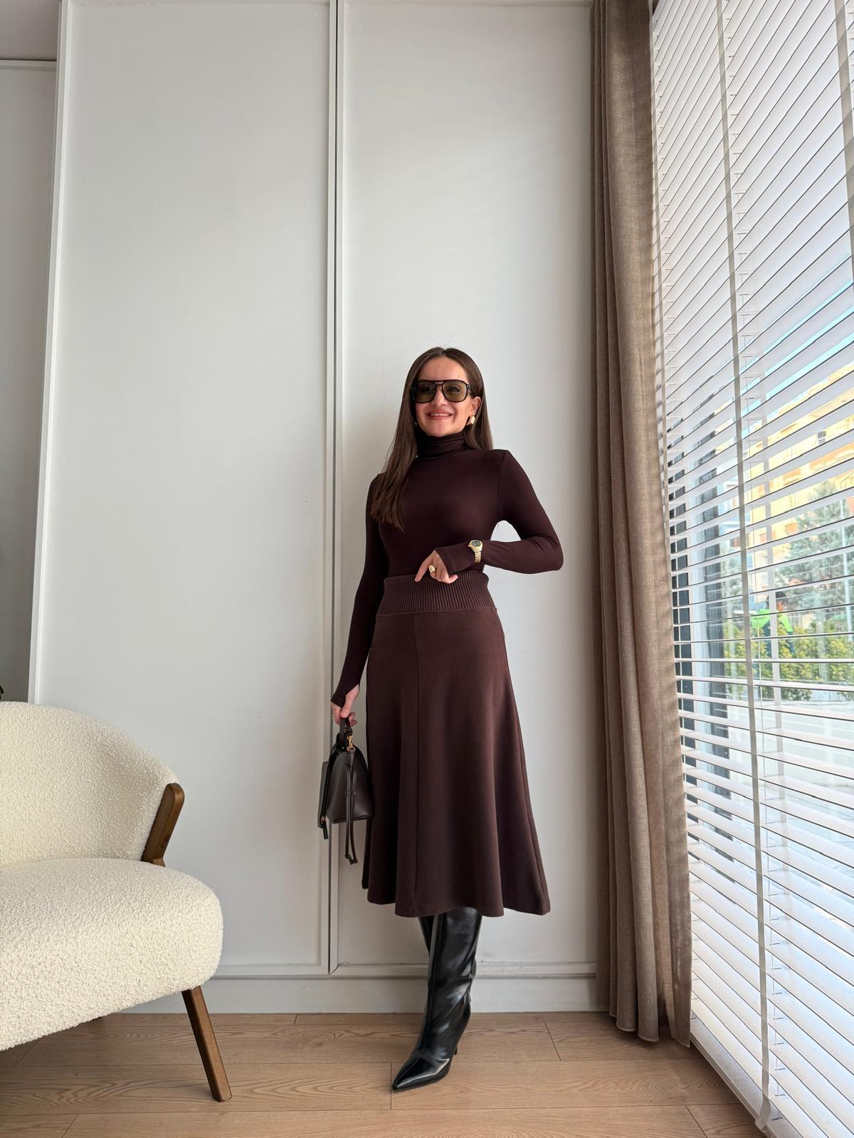 Kahve rengi Ribana Detaylı Triko Etek 17192