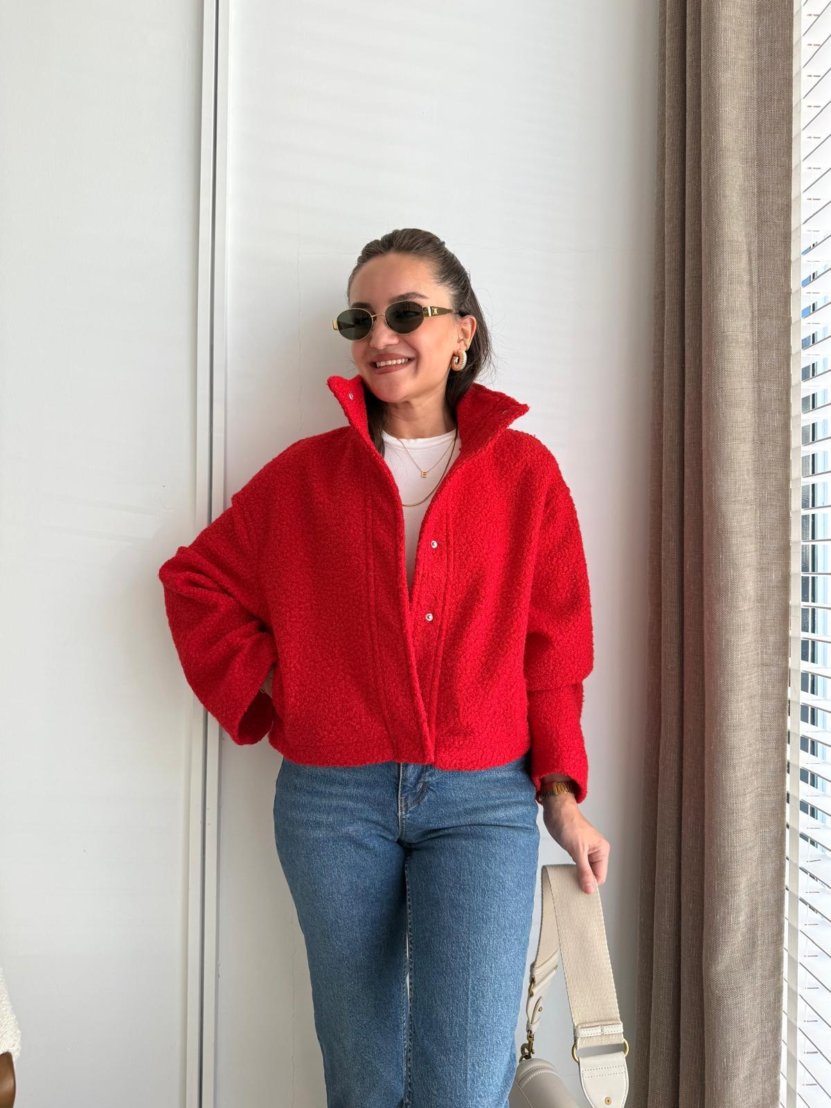 Kırmızı Çıtçıt Düğmeli Buklet Ceket 0146