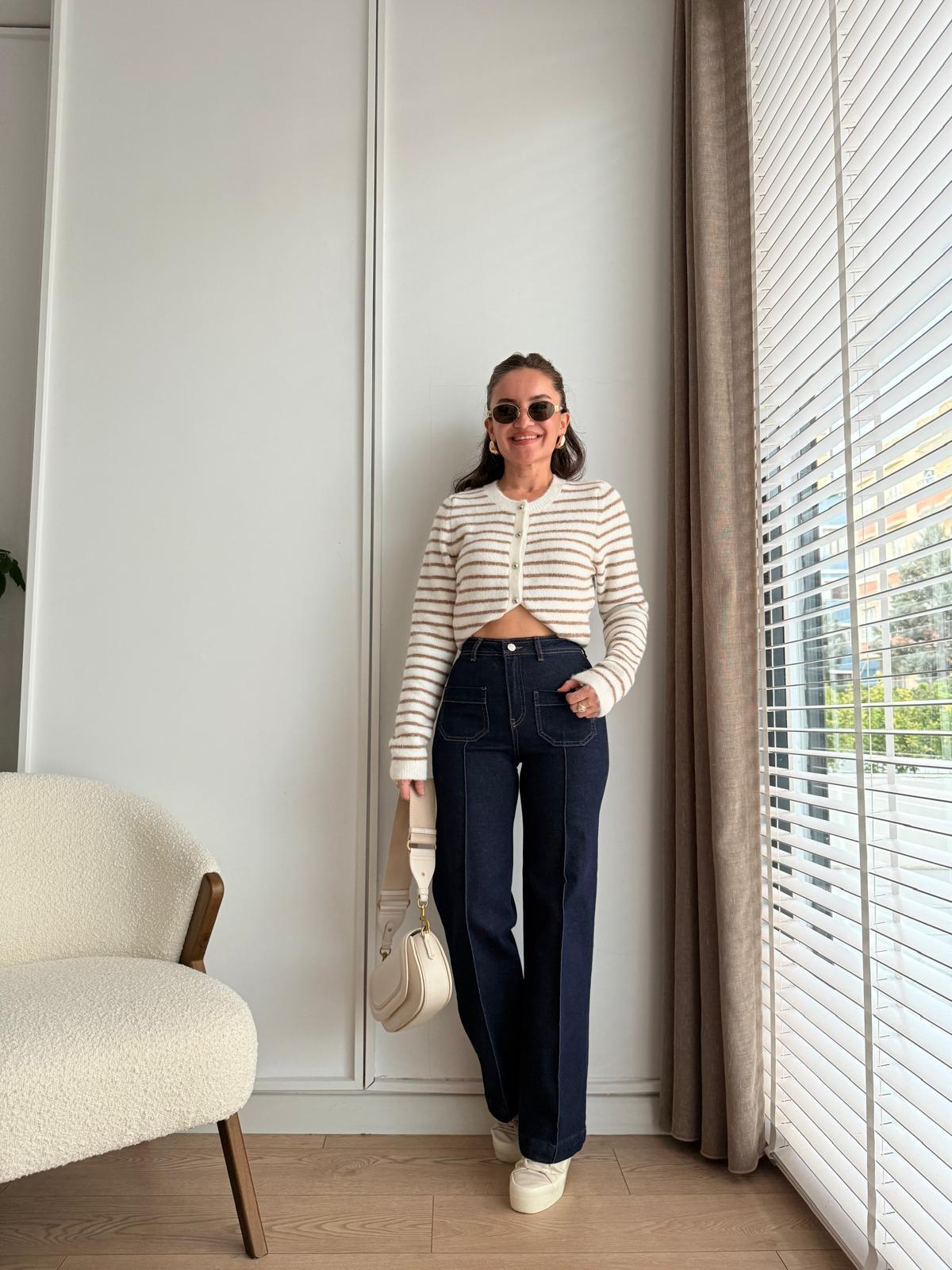 Lacivert Çımalı Cep Detaylı Boru Paça Pantolon 25715