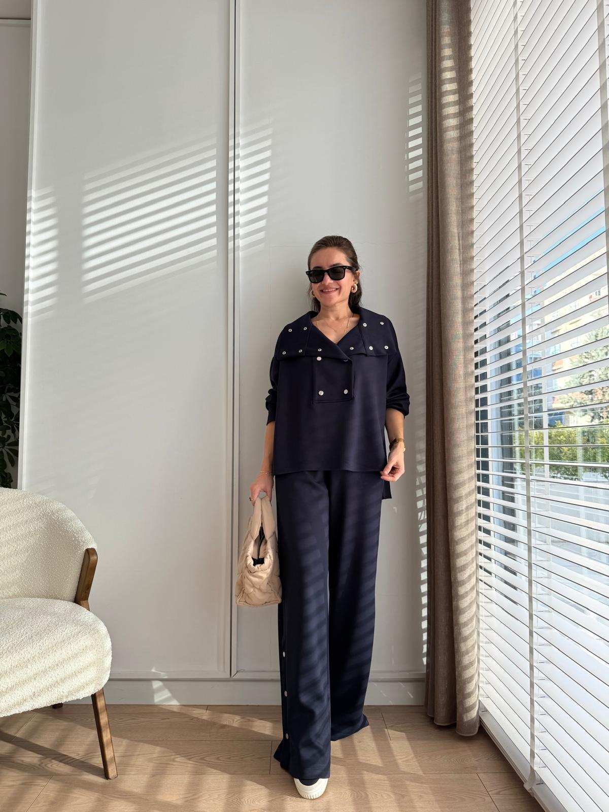 Lacivert Çıtçıt Düğmeli Paça Detaylı Modal Takım 36704