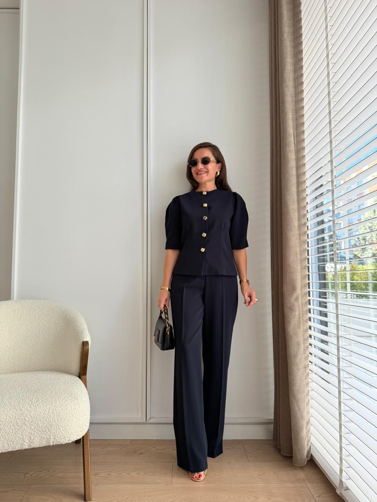 Lacivert Gold Düğmeli Balon Kol Ceket Pantolon Takım 8809