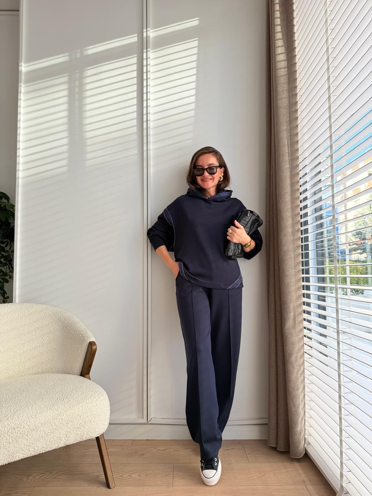 Lacivert Kapüşonlu Taş Detaylı Modal Takım 2573