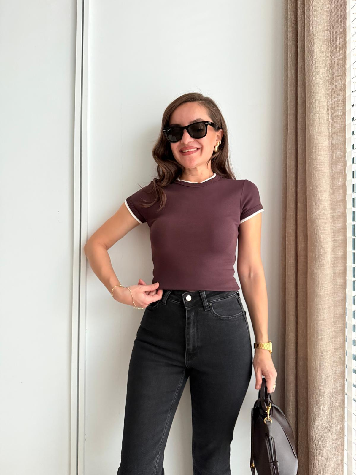 Mürdüm Kısa Kol Garnili Bluz 17073