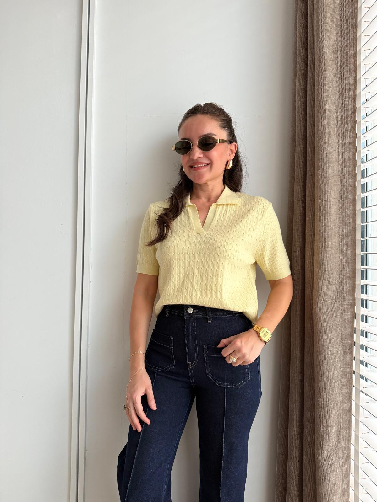 Sarı Saç Örgülü Kısa Kollu Triko Bluz 140482