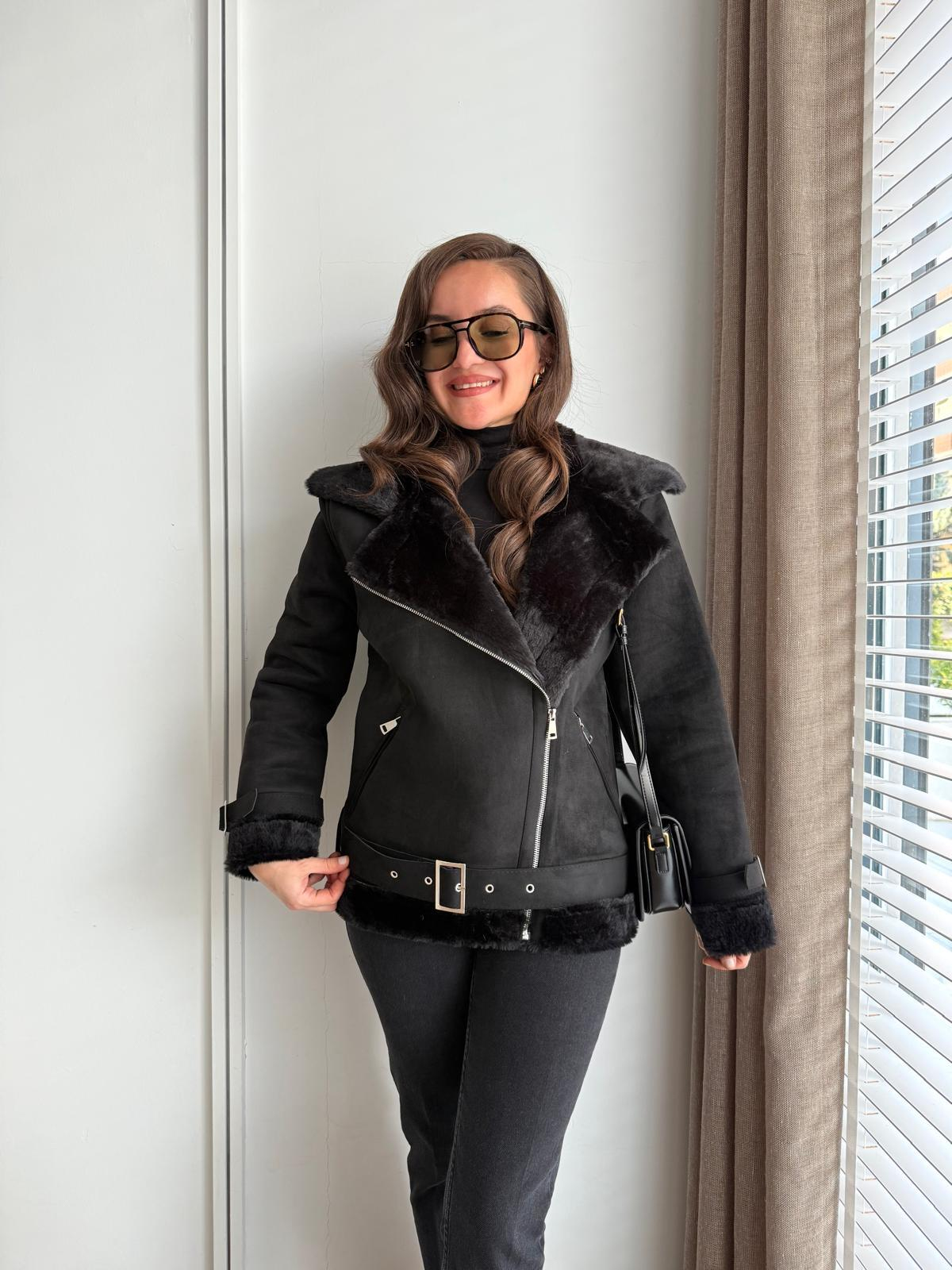 Siyah 1. Kalite İçi Kürklü Nubuk Biker Mont MY01