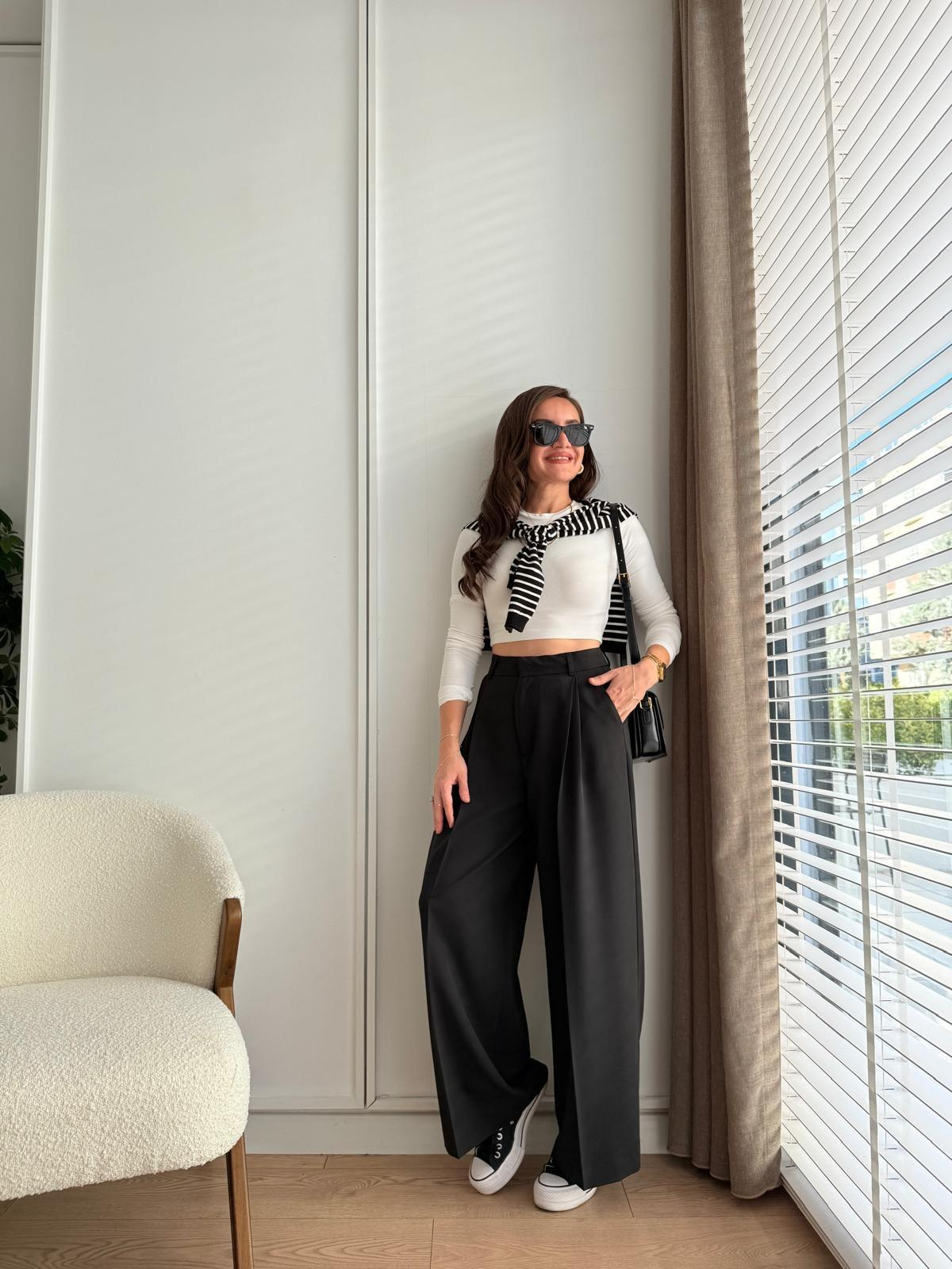Siyah Bel Detaylı Pensli Palazzo Pantolon 51210