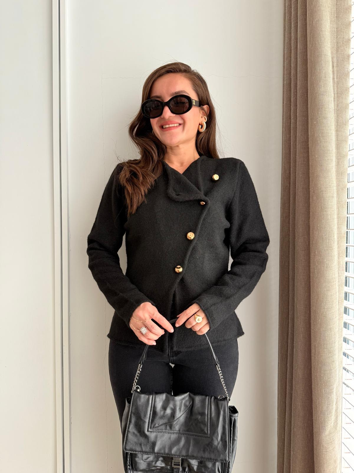 Siyah Çapraz Gold Düğmeli Hırka 4897