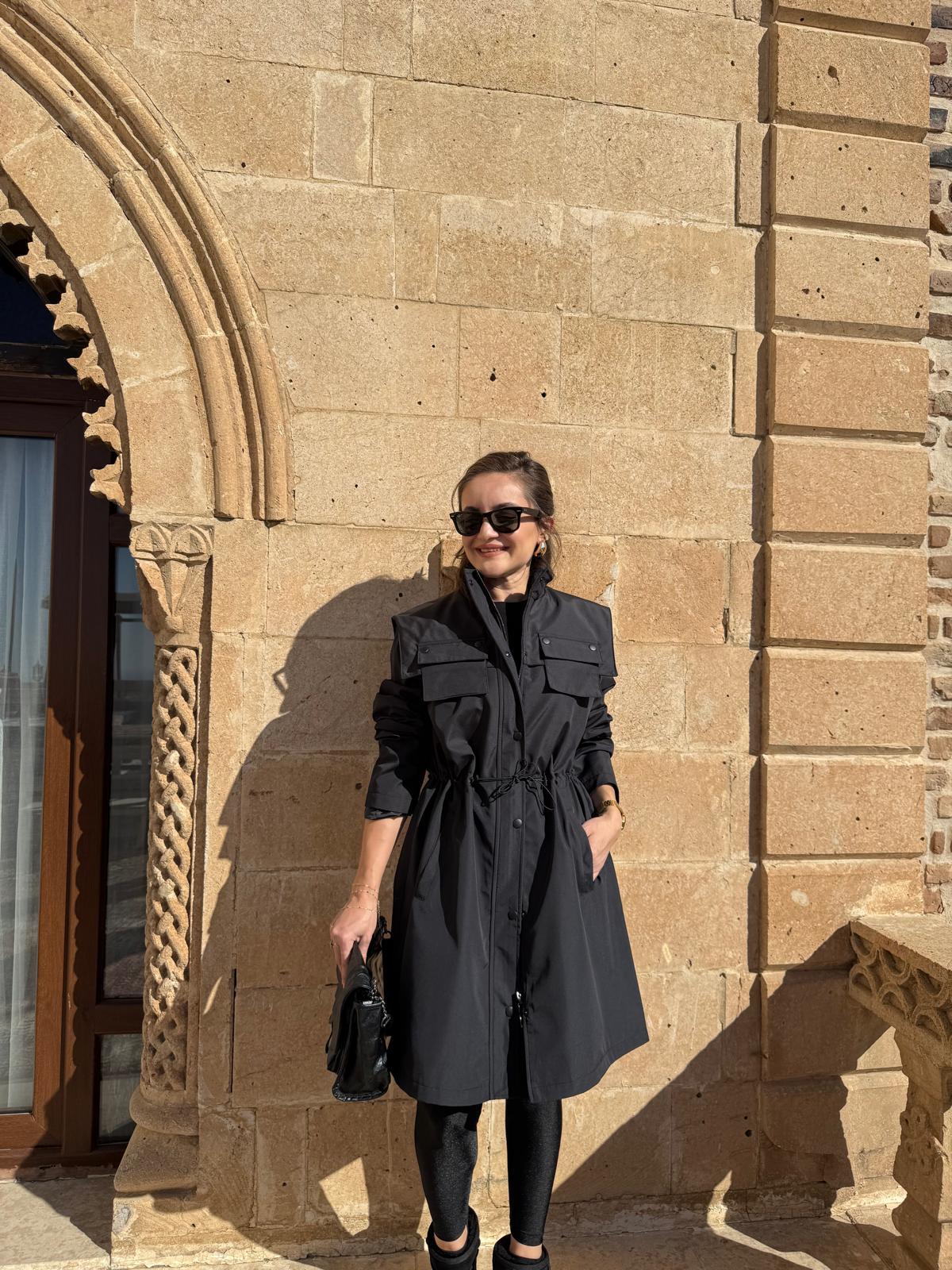 Siyah Cep Detaylı Bel Lastikli Ceket 1517