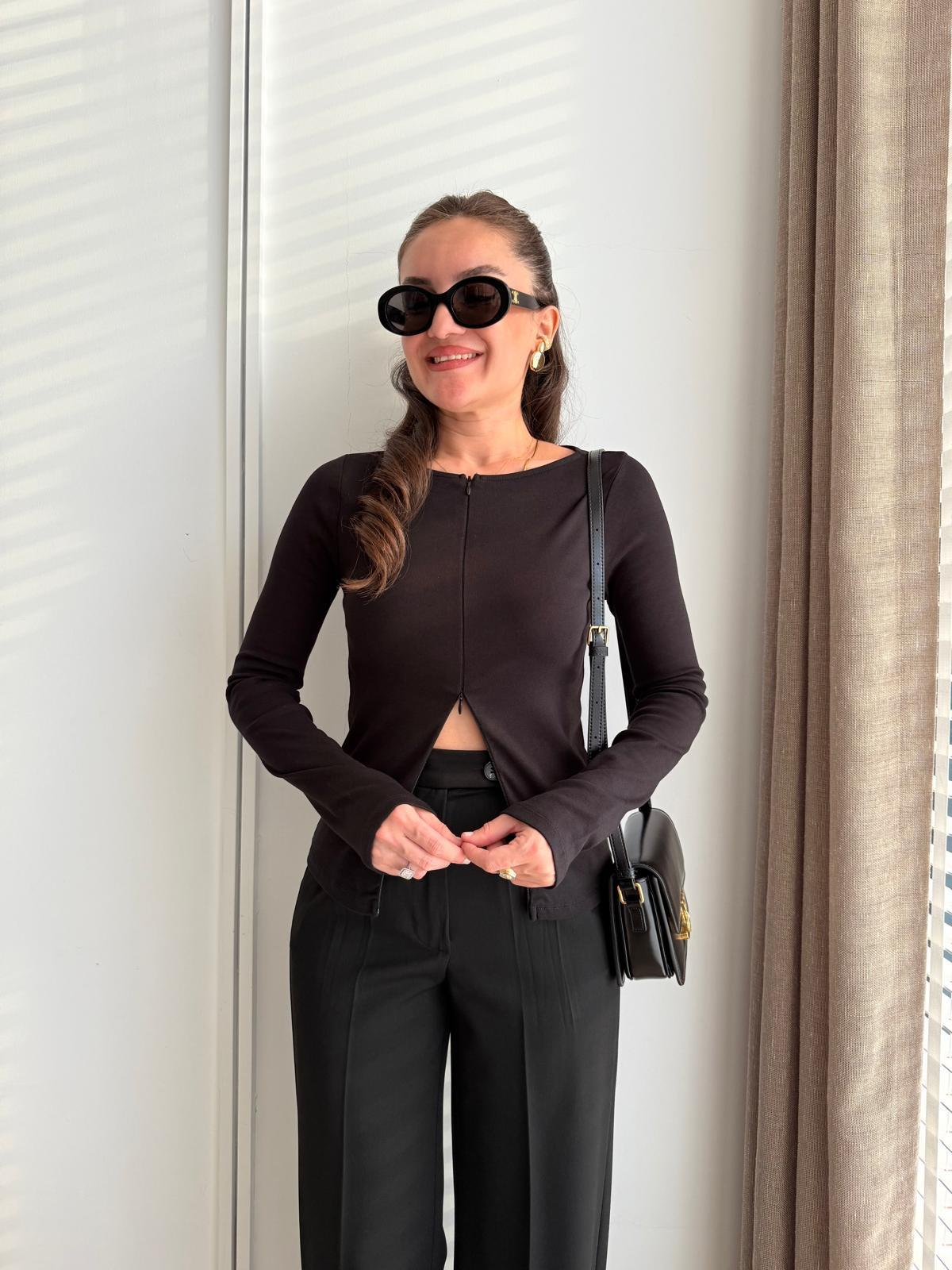 Siyah Çift Fermuarlı Uzun Kol Bluz 17141