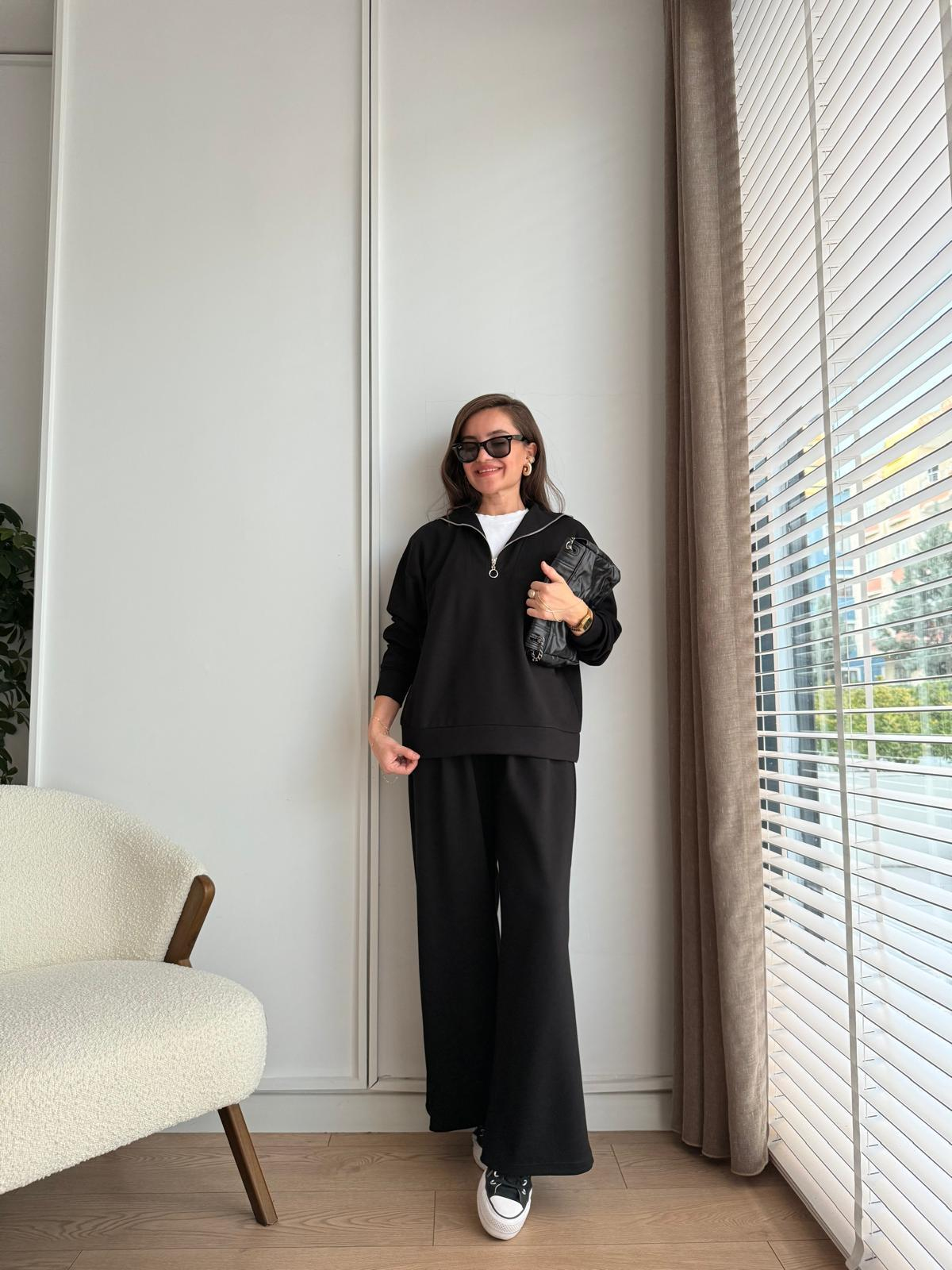 Siyah Dik Yaka Fermuarlı Modal Takım 1105
