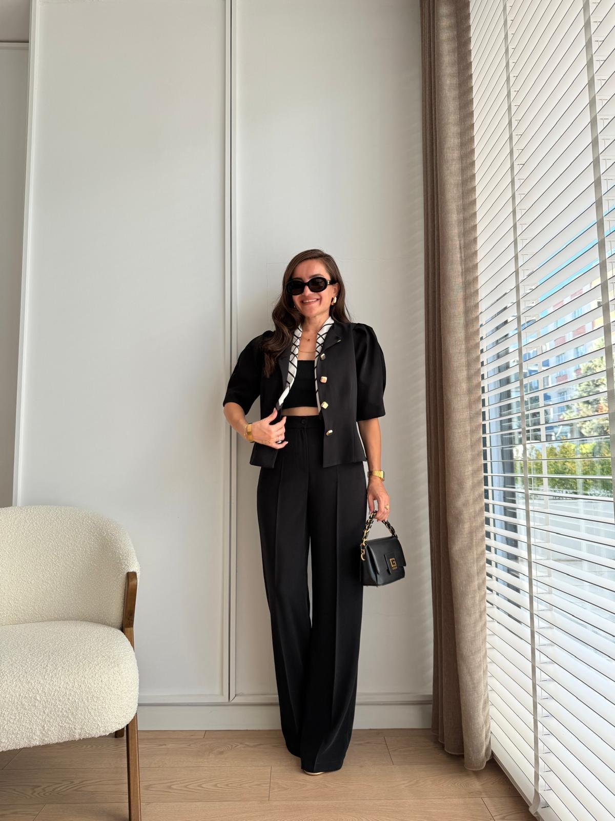 Siyah Gold Düğmeli Balon Kol Ceket Pantolon Takım 8809