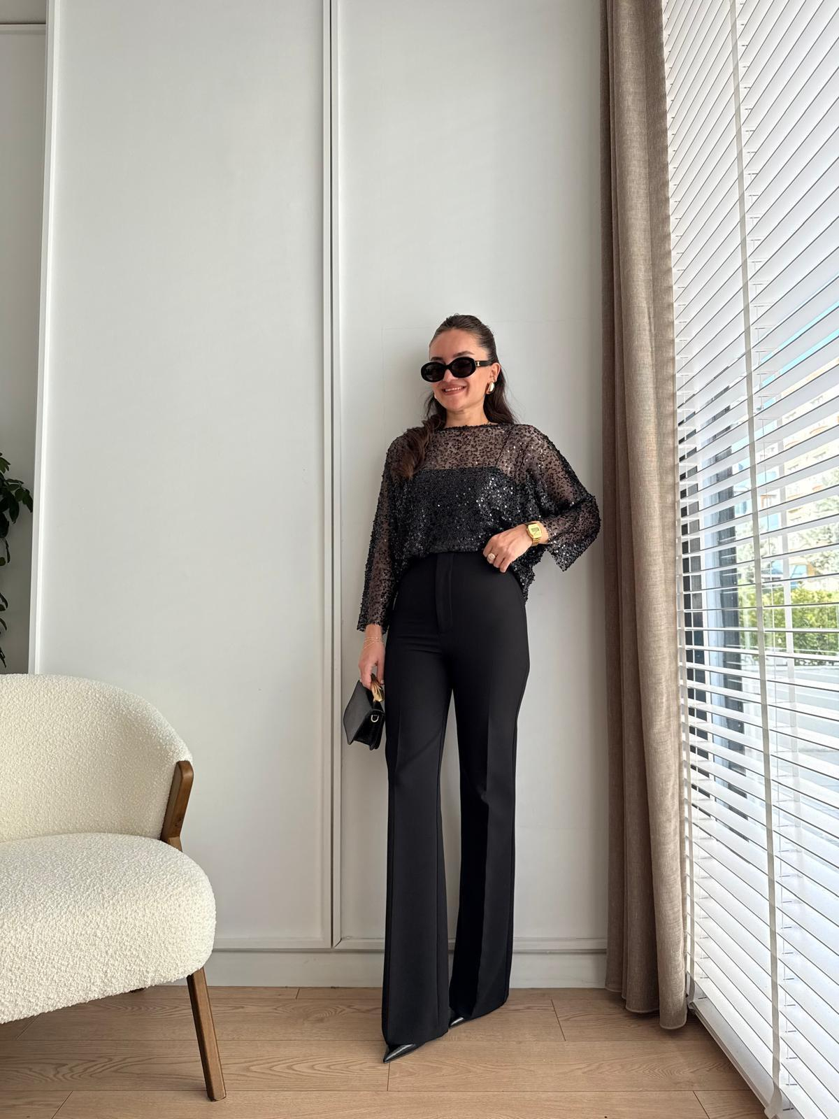 Siyah İspanyol Paça Kumaş Pantolon 17049