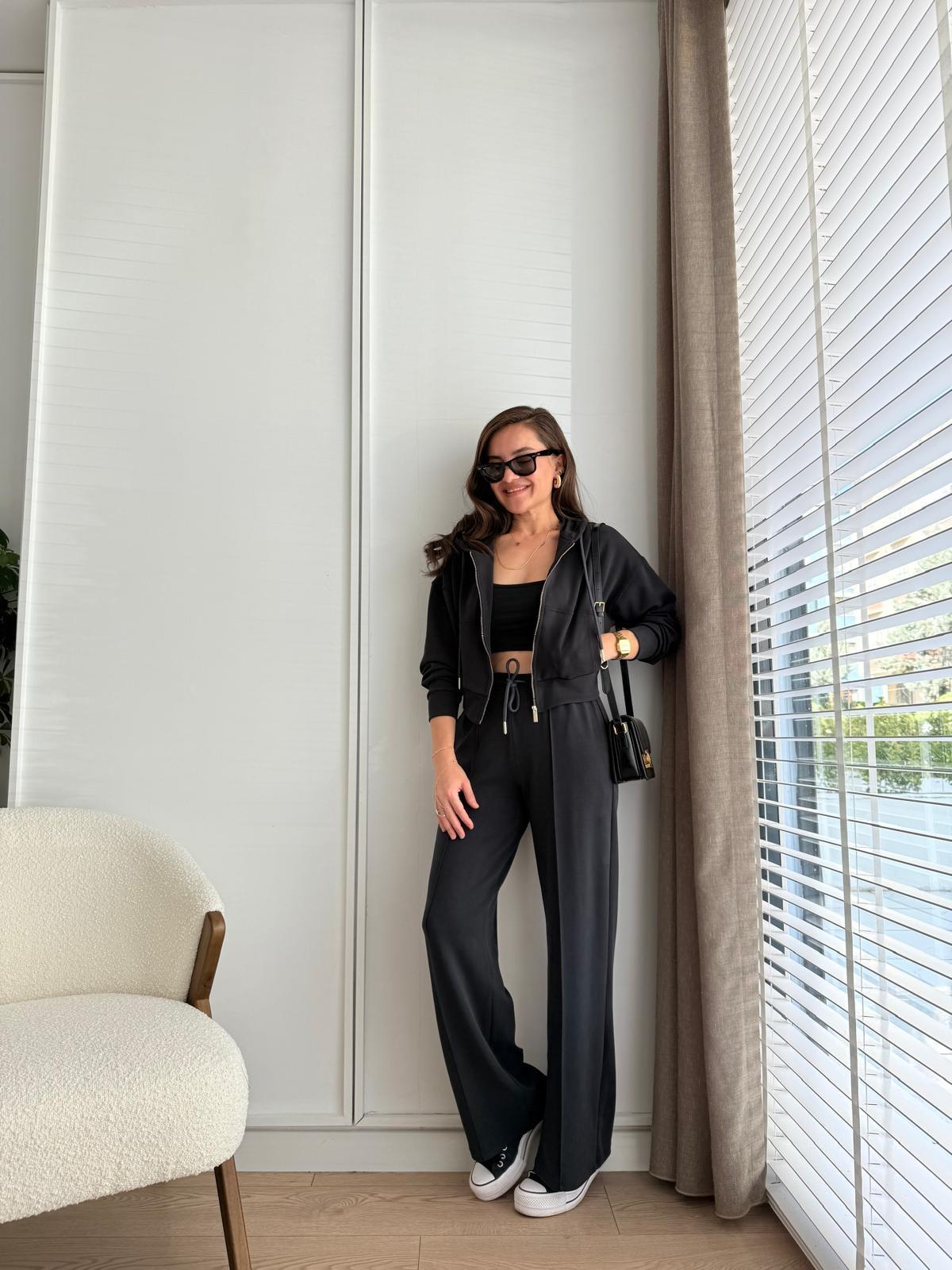 Siyah Kapüşonlu Cepli Modal Takım 17101