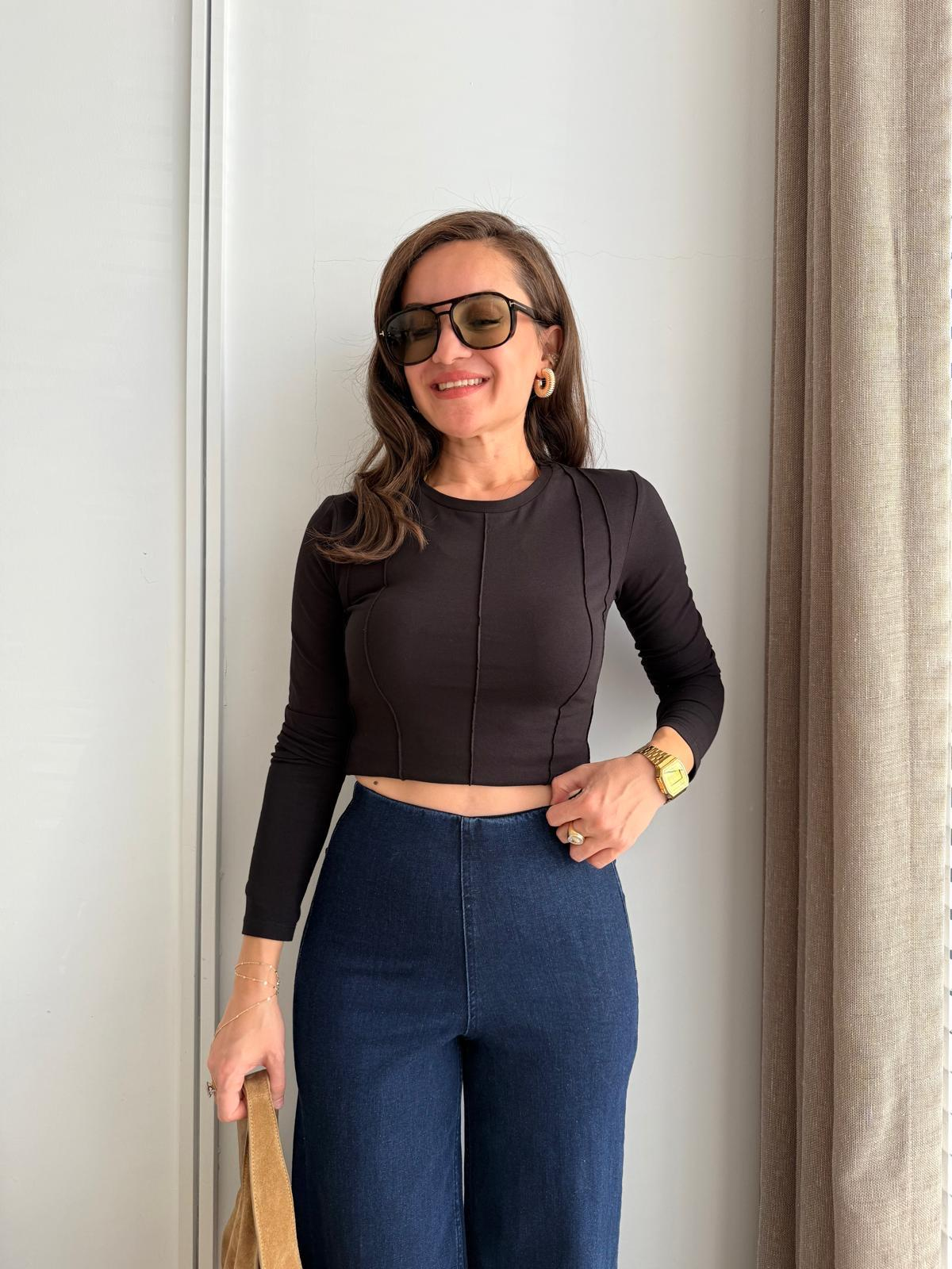 Siyah Önü Dikiş Detaylı Bluz 4505