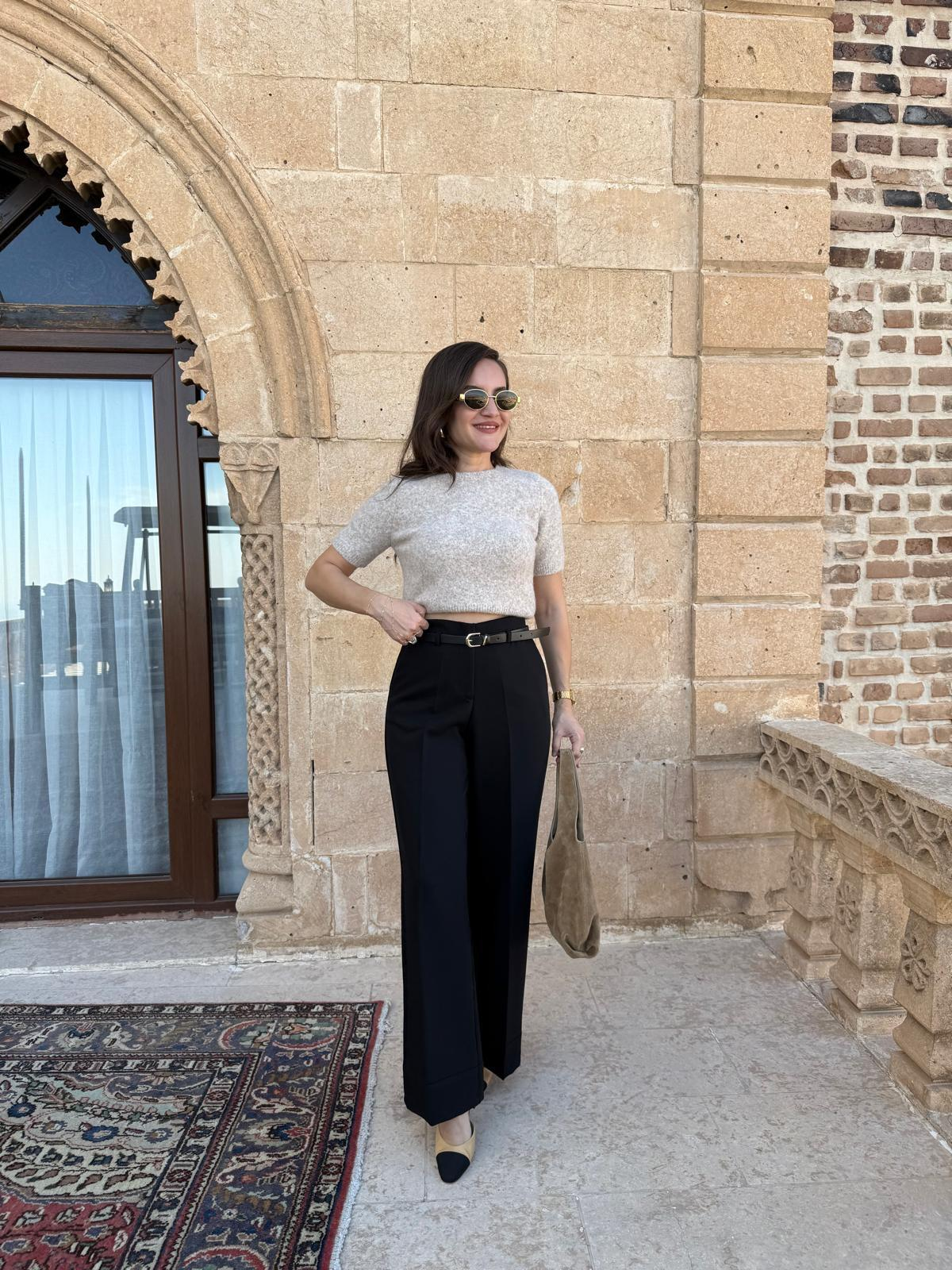 Siyah Paça Detaylı Kemerli Palazzo Pantolon 17050