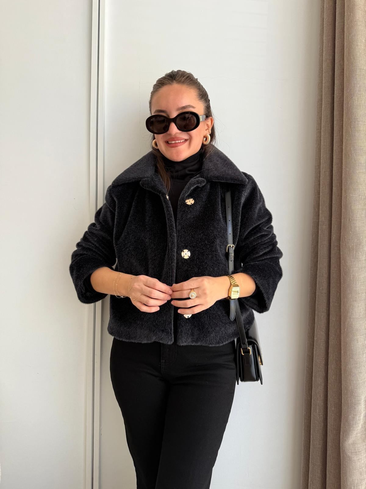 Siyah Premium Seri Astarlı Kürk Kaban 1019