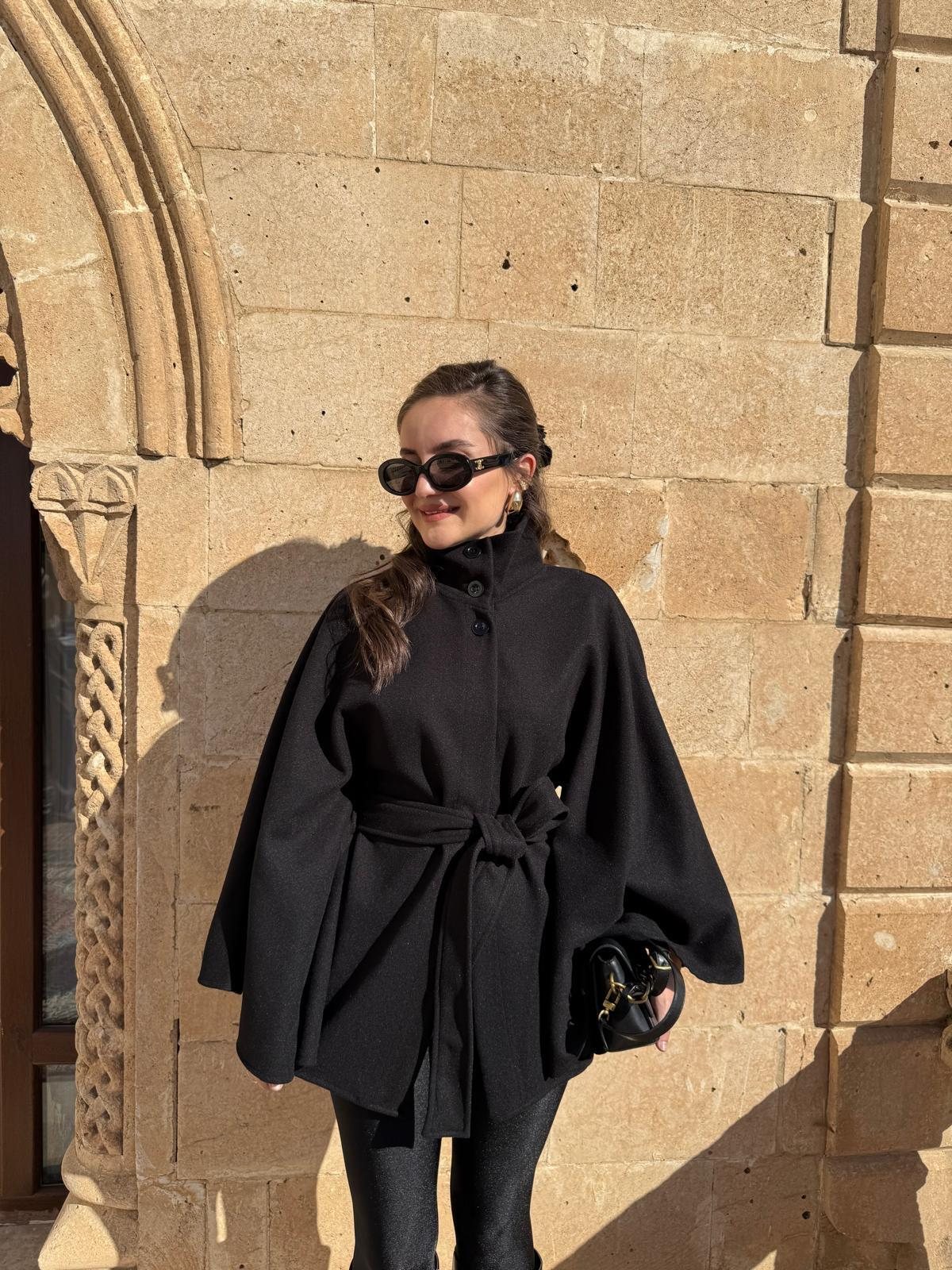 Siyah Premium Seri Kuşaklı Panço 1055