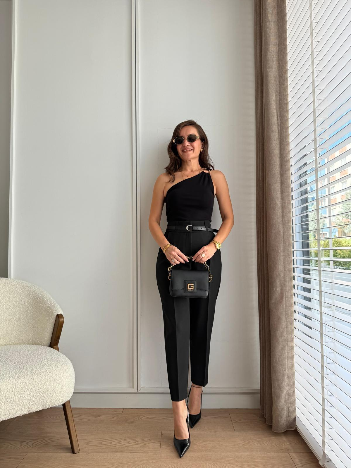 Siyah Yüksek Bel Kemerli Pantolon 3790