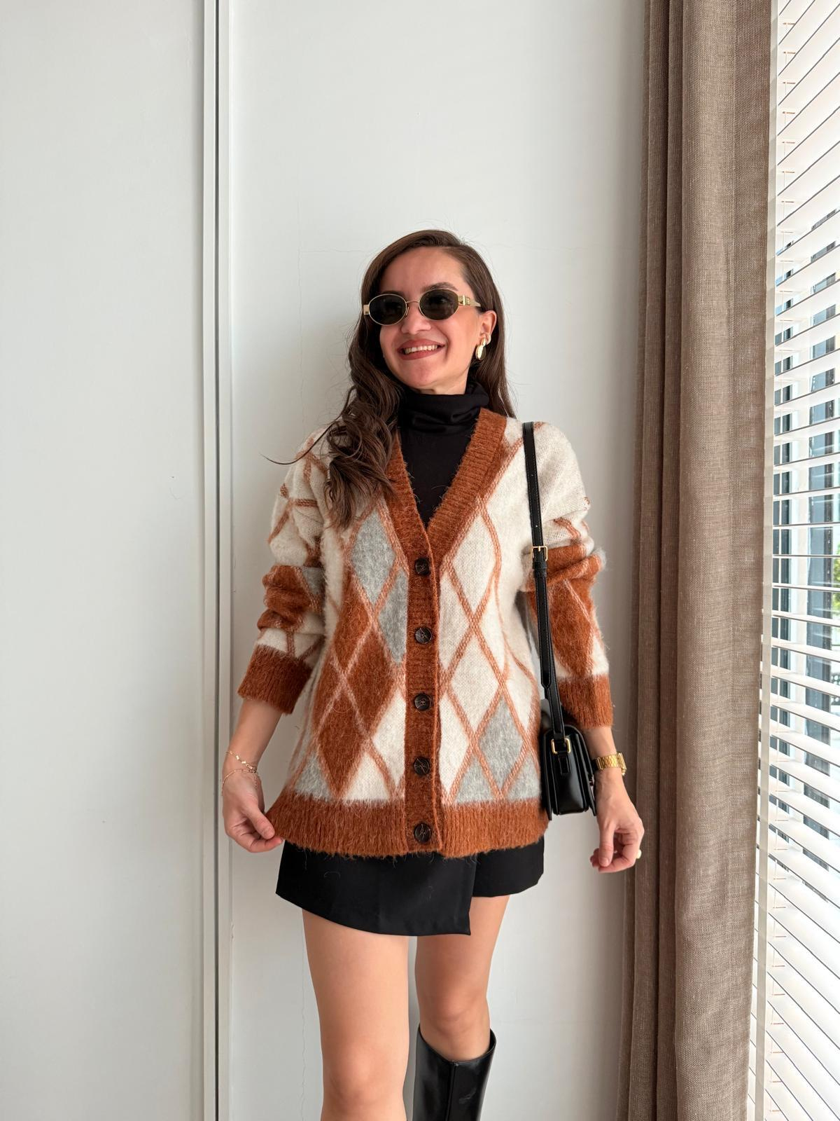 Taba V Yaka Baklava Desen Triko Hırka 60989