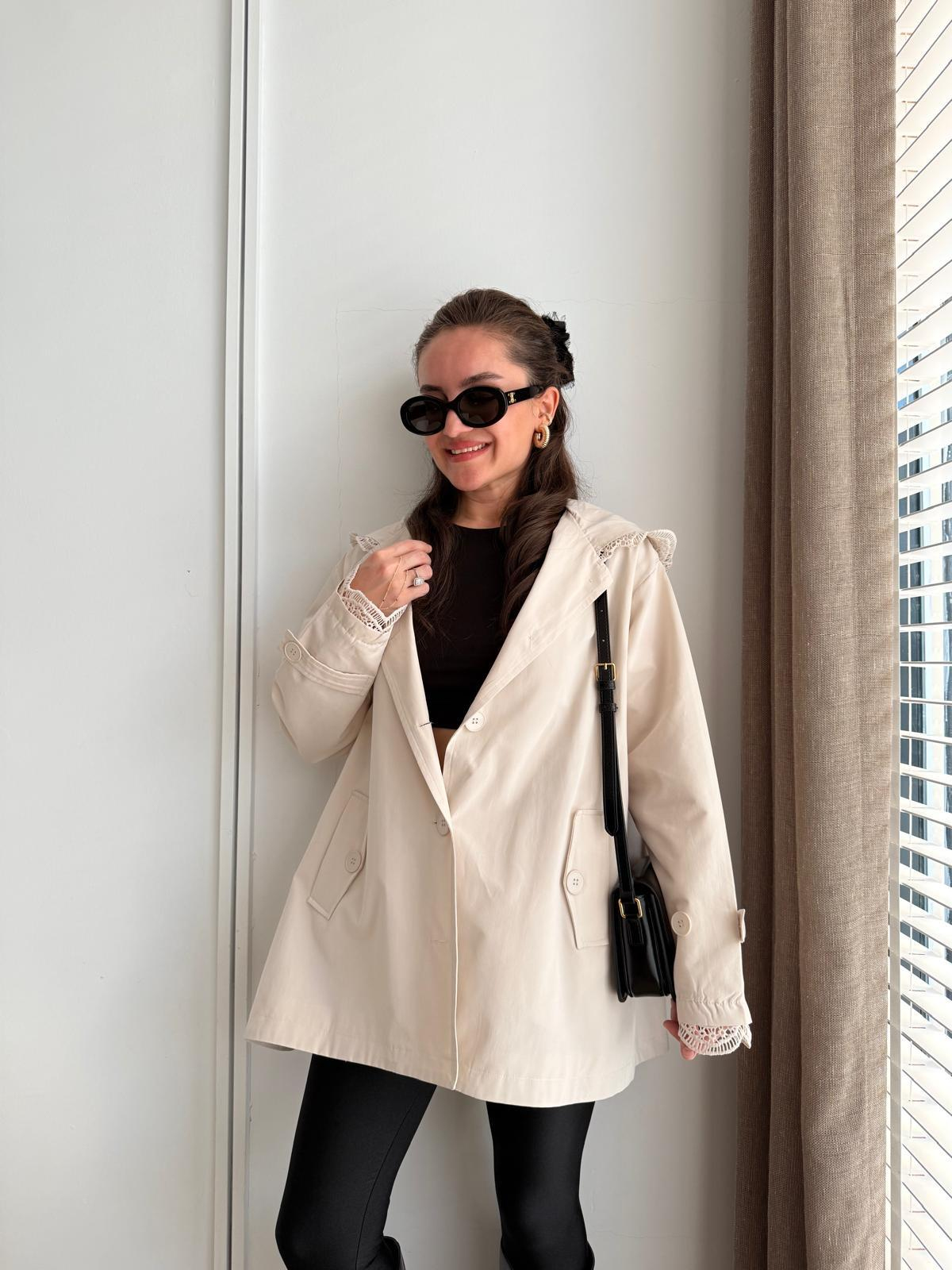 Taş Dantel Detaylı Tasarım Trençkot 99719