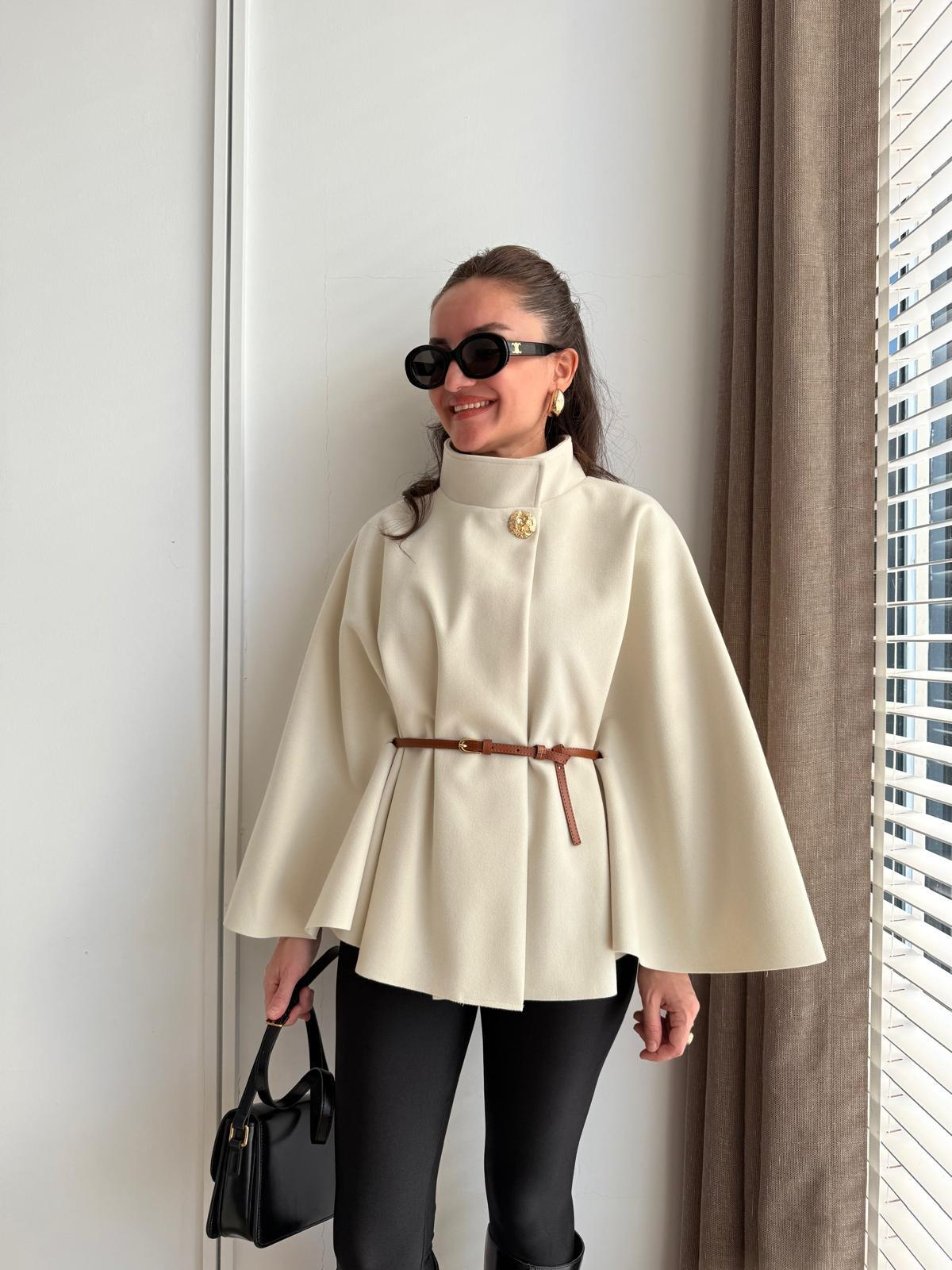 Taş Hakim Yaka Kemer Detaylı Panço 2603